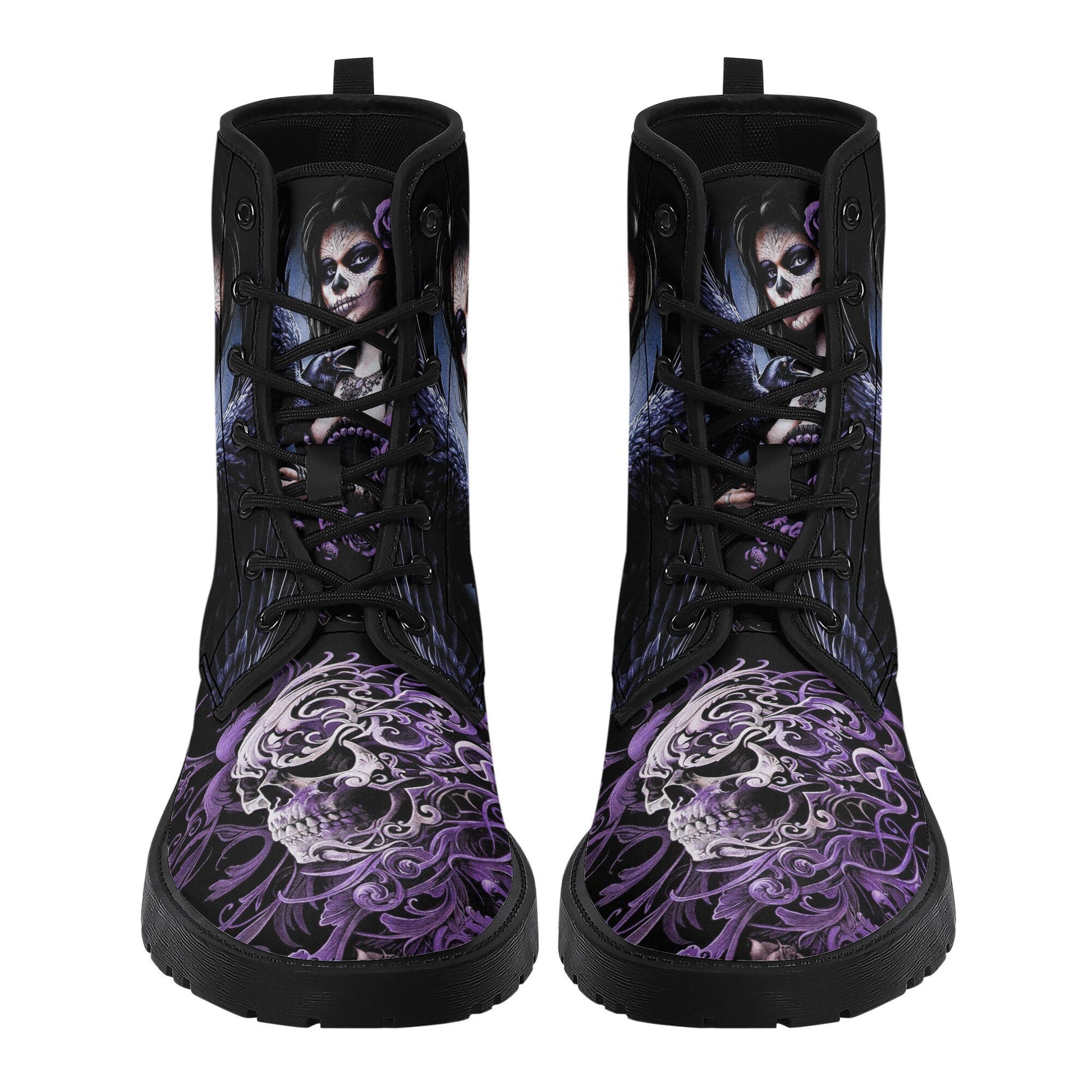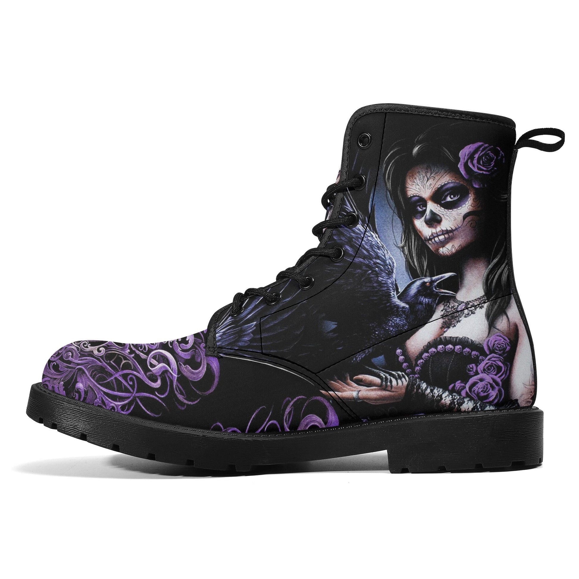 Sugar skull day of the dead girl leather boots, Candy skull girl boots men women Dia de los muertos skull girl boots shoes sugar skull boots WOMEN SIZE Size______Foot Length (cm) US5_______23.1cm US5.5_____23.8cm US6_______24.4cm US7_______25.1cm US8_______25.7cm US9_______26.4cm US10______27.0cm US11______27.7cm US11.5____28.3cm US12______29.0cm MEN SIZE Size______Foot Length (cm) US5_______25.1cm US6_______25.7cm US7_______26.2cm US7.5_____27.1cm US8.5_____27.7cm US9.5_____28.3cm US10_______29.0cm US11______29.6cm US12_____30.3cm US13______30.9cm US14______31.6cm High quality eco-friendly synthtic leather material on waterproof boots New style for black gum rubber outsole and black rear pull-loop Breathable EVA foamed insole anti-heat, anti-moisture, anti-corrosion Mesh fabric and foamed lining with lace-up closure for a snug fit Platform measures approx 0.75”for traction and durability A groovy colour explosion for your feet in our signature unisex combat boots Designed for fashion people, stylish and personalized The Upper Made of PU,the sole made of rubber. Soft PU make it comfortable and soft. Two different colors of sole. Rear pull-loop make the boots easy to put on. Season: Autumn, Spring, Winter Occasion: Outdoor, Daily Gender:Women Care Instruction: Spot clean only ======== All products in our store are only manufactured upon receiving an order from the customer. Please carefully review the product description and dimensions in the illustrative images before placing an order. The following cases are not eligible for return/exchange: 1. The product you receive matches the description. 2. The product dimensions (with illustrative images describing the dimensions) you receive match the description. 3. The product has been customized as per your request (e.g., printed with your name/image).