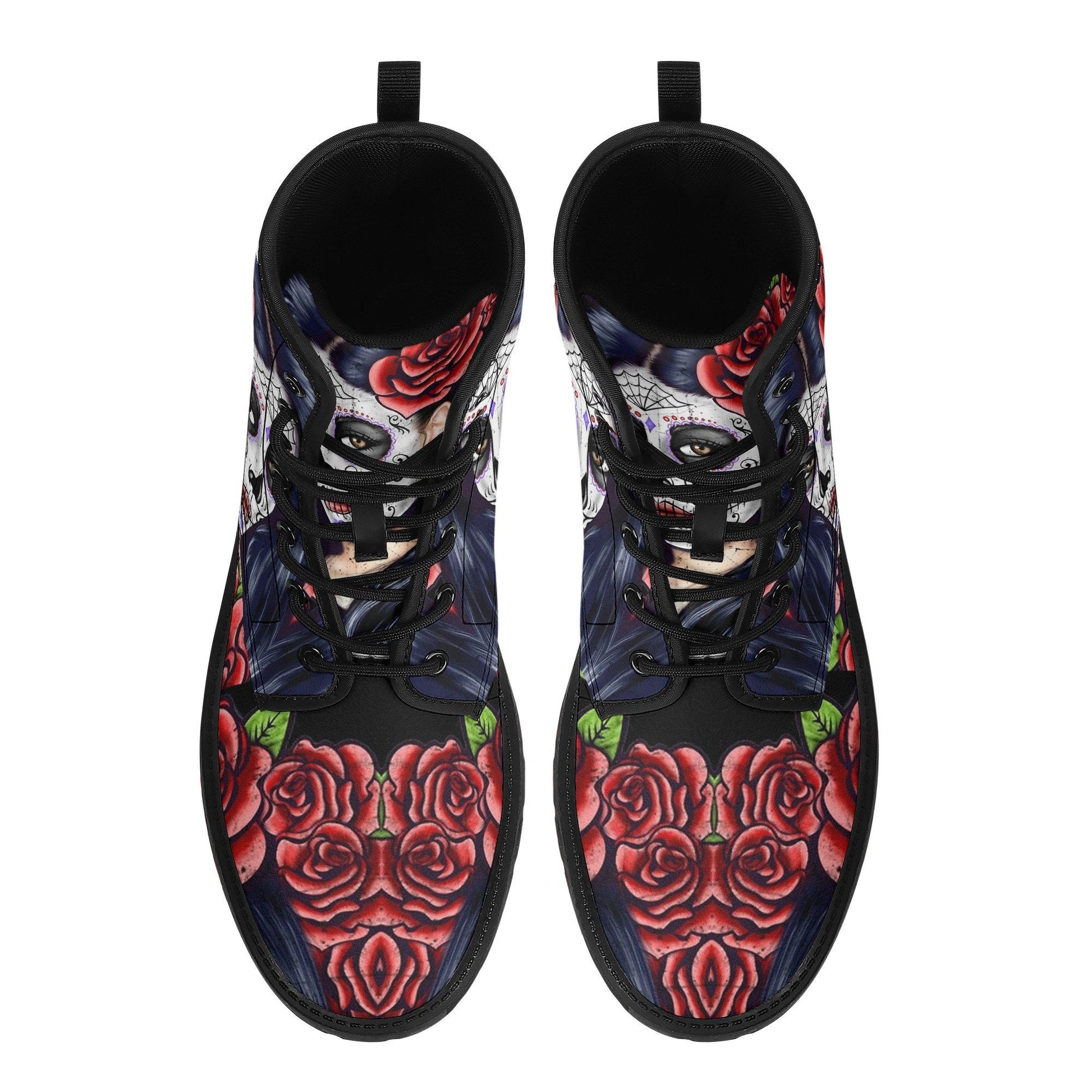 Sugar skull day of the dead girl leather boots, Sugar skull girl boots men women, Mexican calaveras skull girl boots shoes sugar skull boots