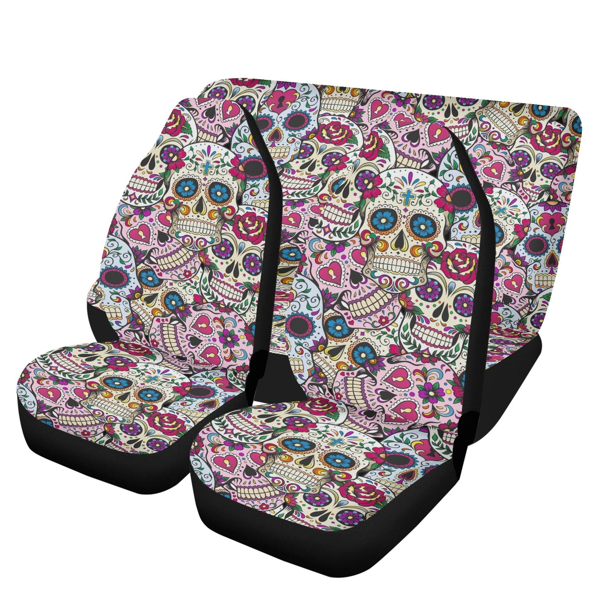 Sugar skull dia de los muertos calaveras Car Seat Covers, day of the dead car mats, sugar skull car accessories, skull car seat covers mats