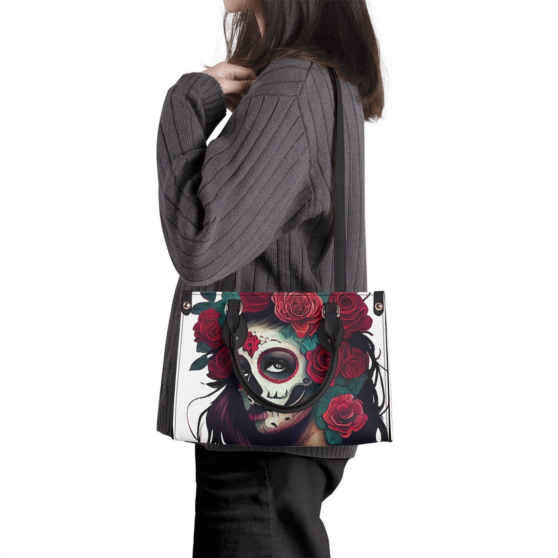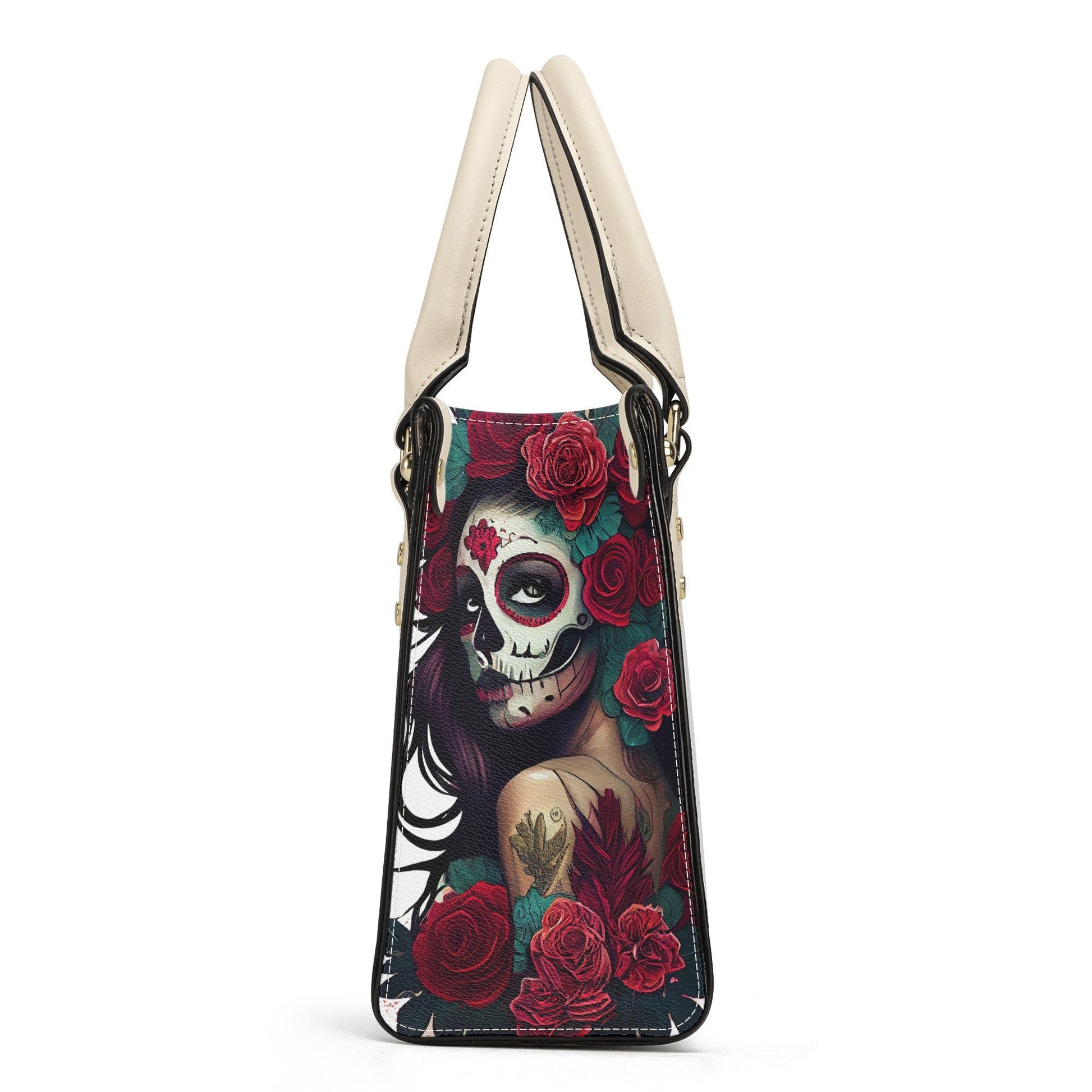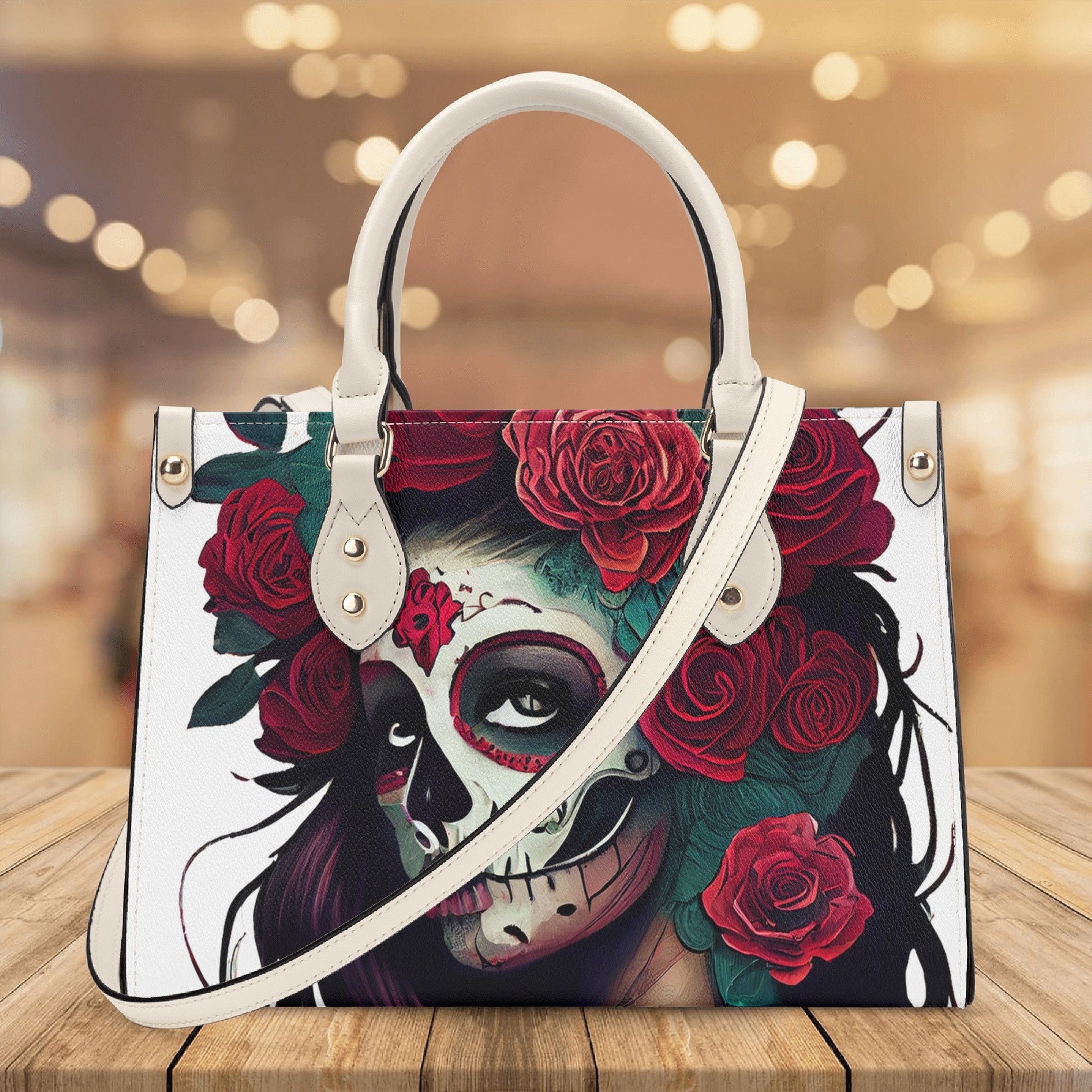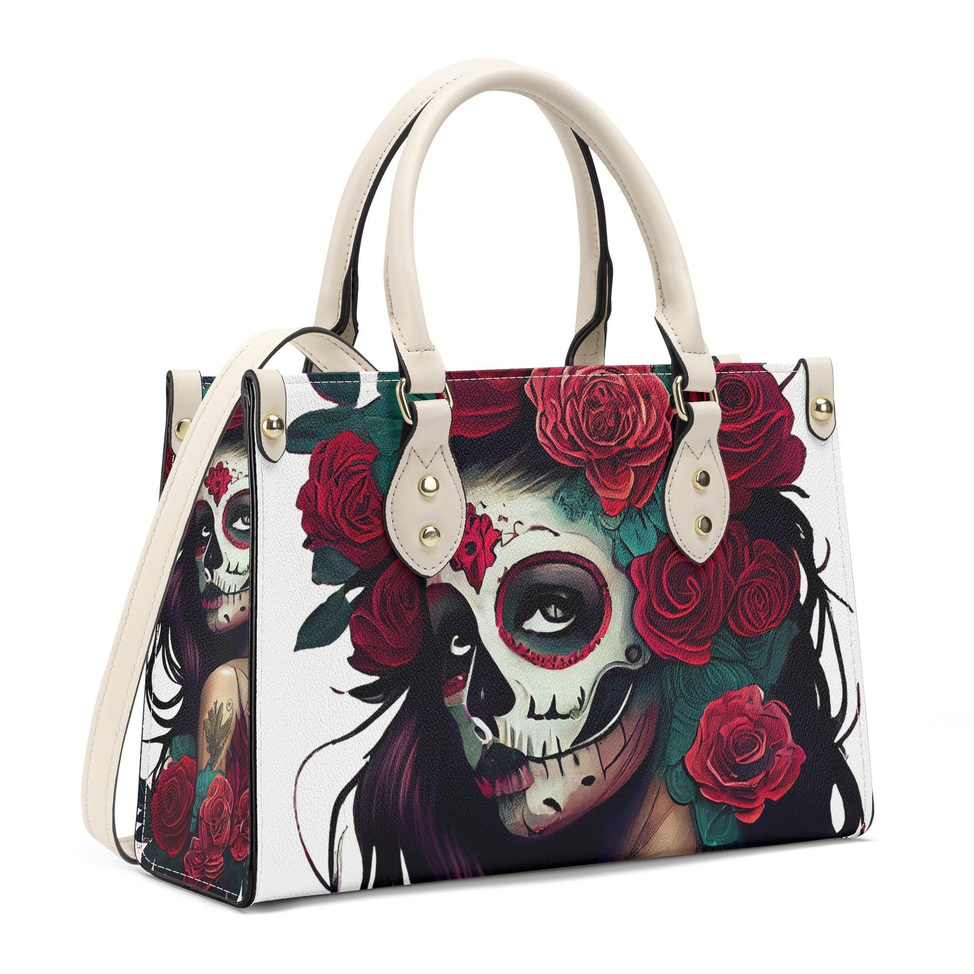Day of the dead handmade bag, floral skull handbag, sugar skull girl purse, dia de los muertos skull crossbody bag, floral sugar skull cosmetic bag, floral sugar skull handbag, sugar skull girl tote bag, floral sugar skull large tote bag, floral sugar skull crossbody bag, floral sugar skull body bag