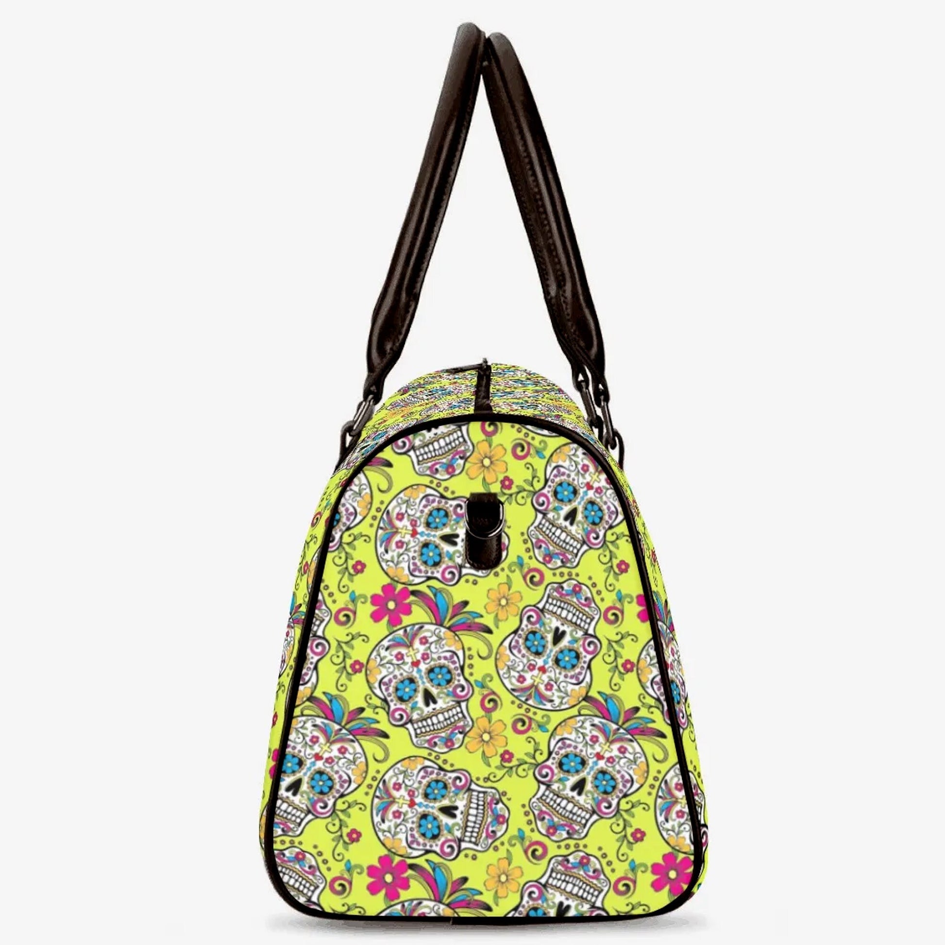 Floral sugar skull duffel bag, floral sugar skull shoulder bag, candy skull Canvas Weekend Travel Bag, sugar skull weekender bags, dia de los muertos skull Carry on Weekender Overnight Bag, mexico weekender bags, candy skull weekender bags,