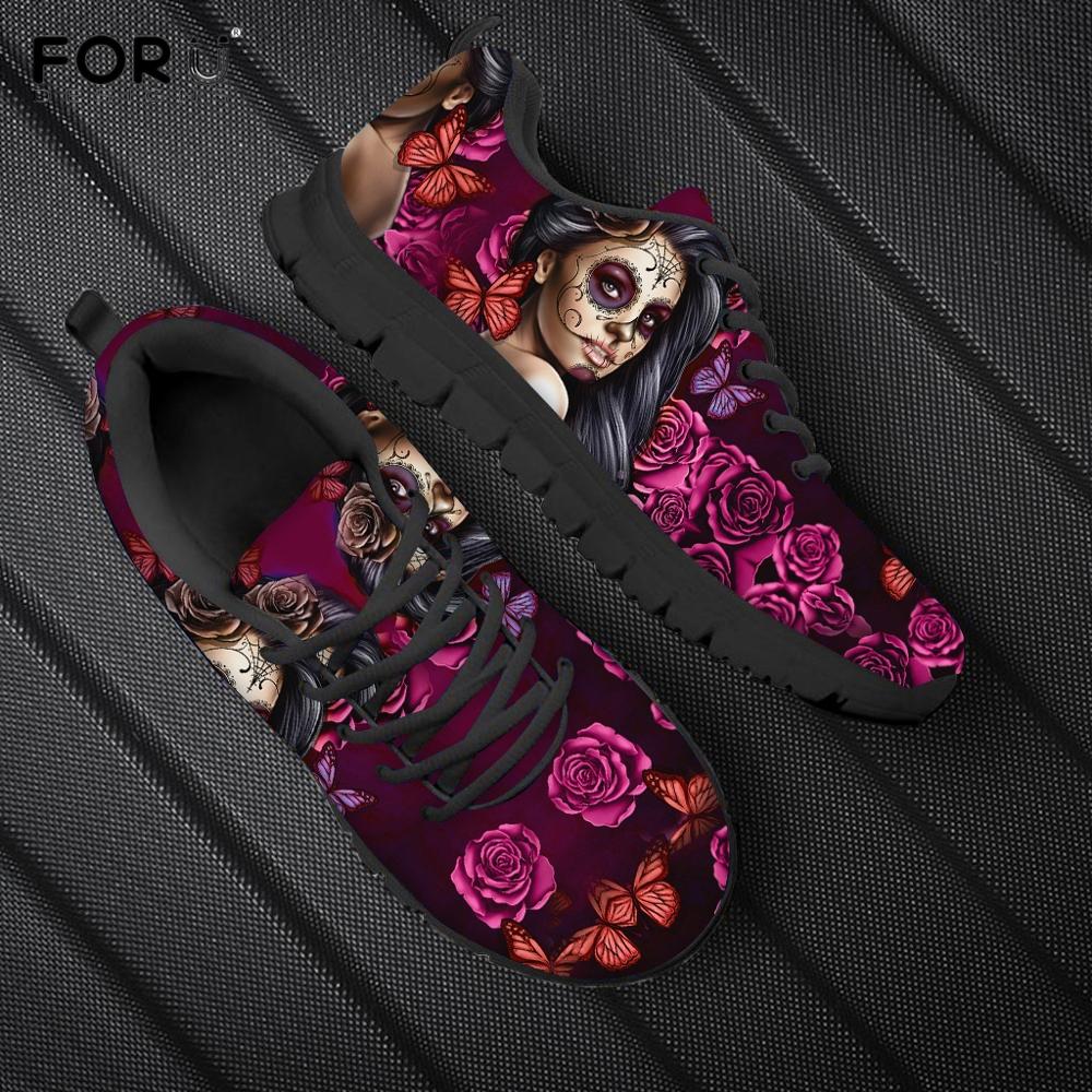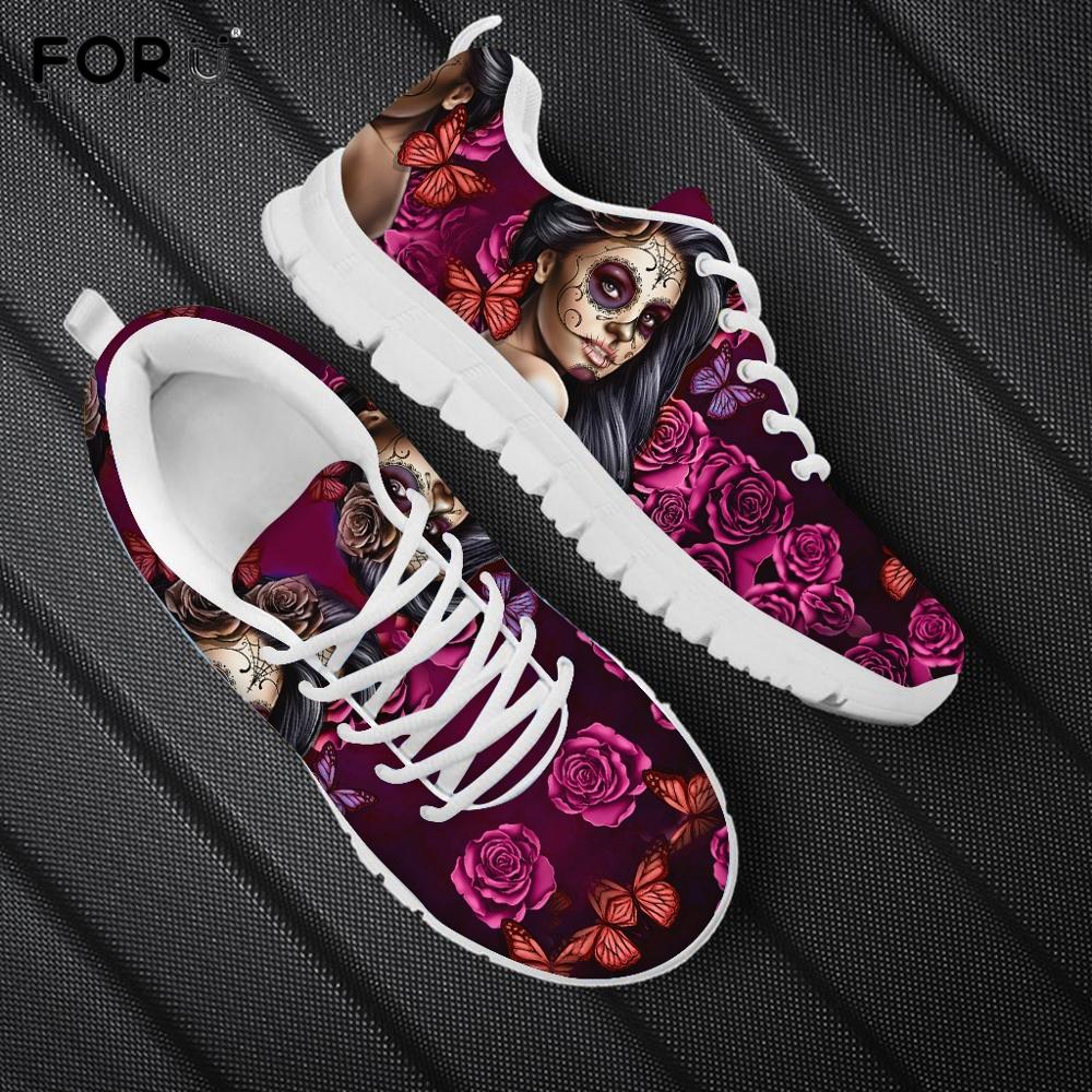 Sugar Skull Red Rose Floral Pattern Shoes Women Casual Spring/Autumn Sneakers