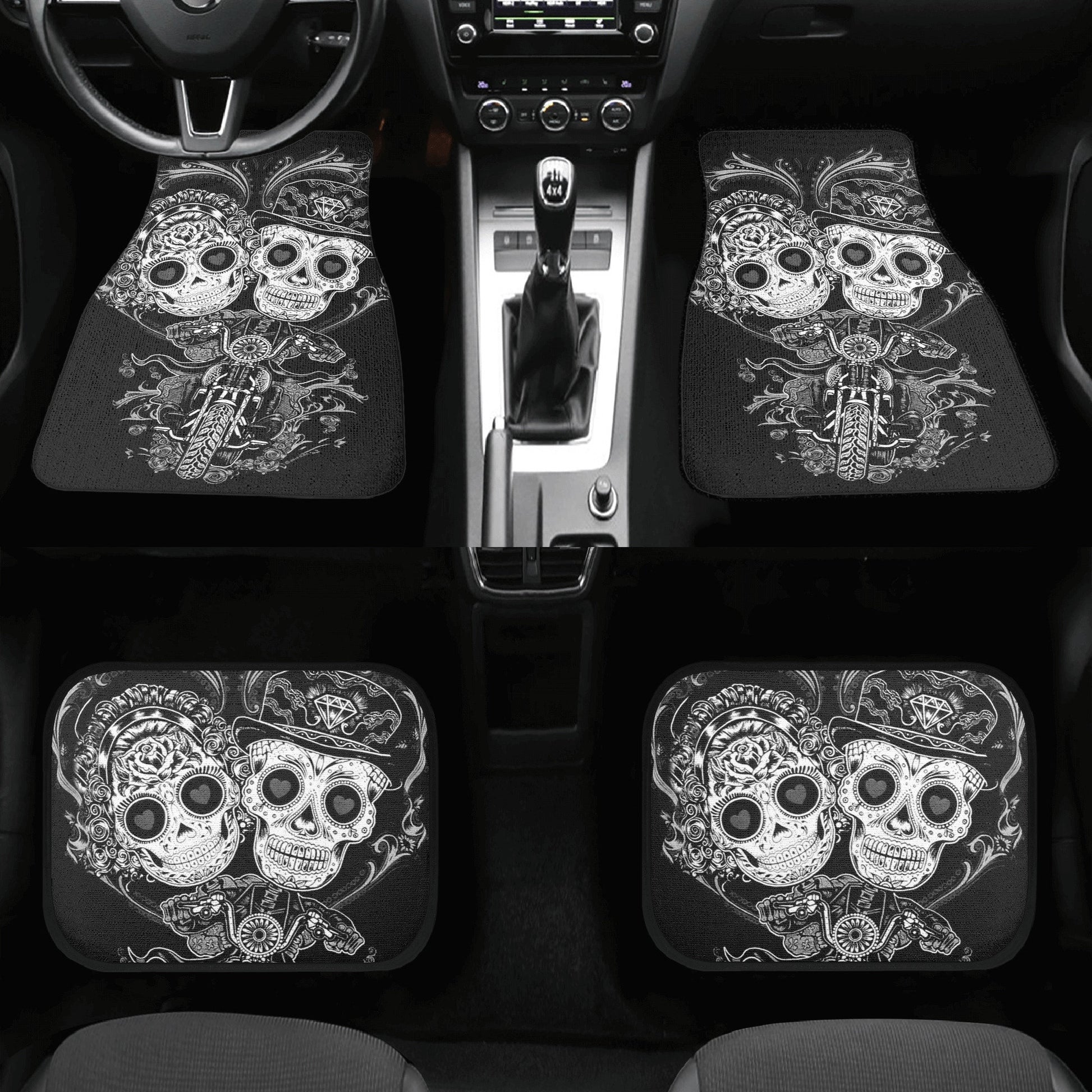 Sugar skull rug mat for car, candy skull cover cushion accessories for Cars, floral skull car seat cover full set, day of the dead car seat protector, sugar skull rug for car, mexico mat for car, sugar skull girl car accessories, floral sugar skull car mat