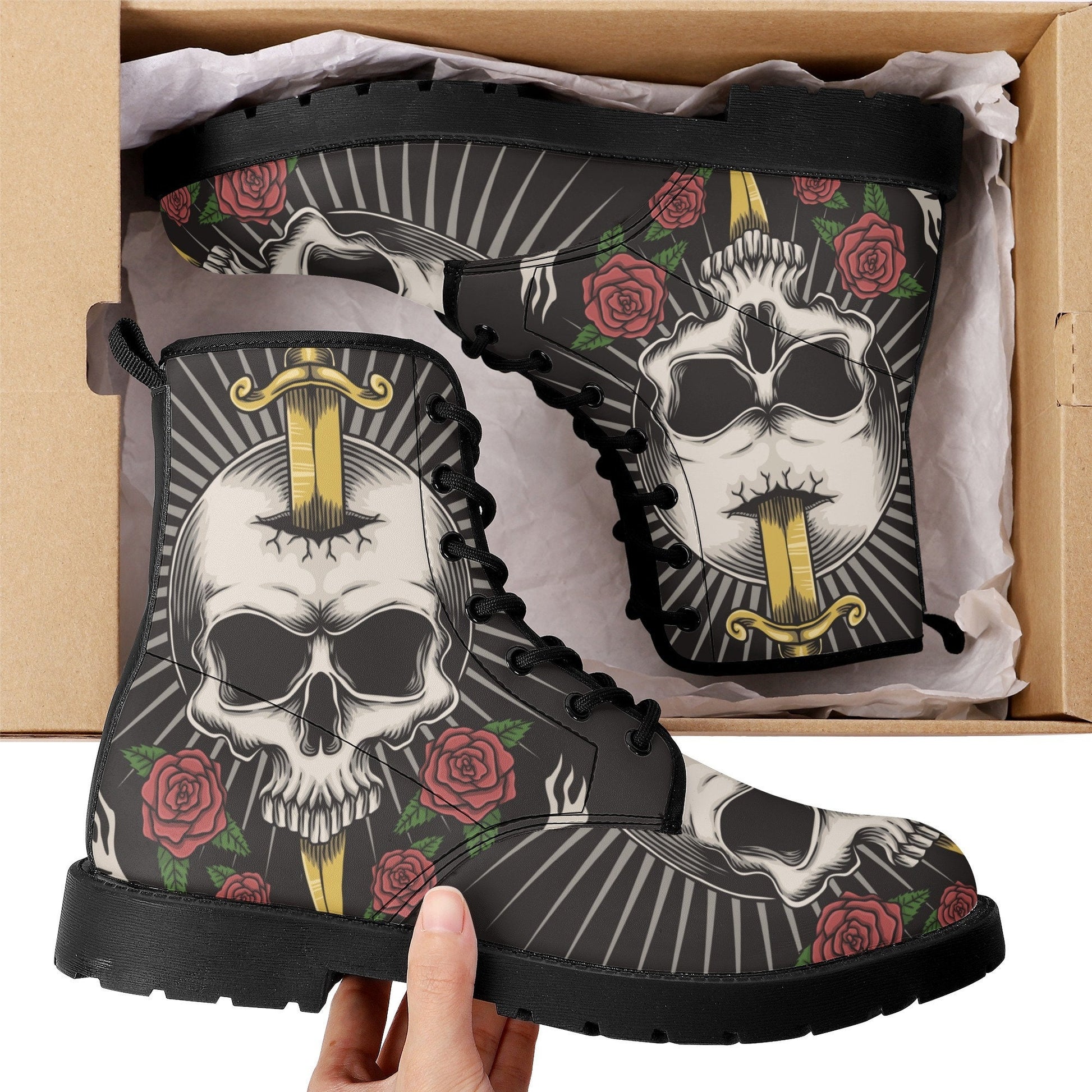 Sword skull grim reaper boots for men women, Halloween skull gothic women boots skeleton boots, Horror grim reaper leather skull boots shoes