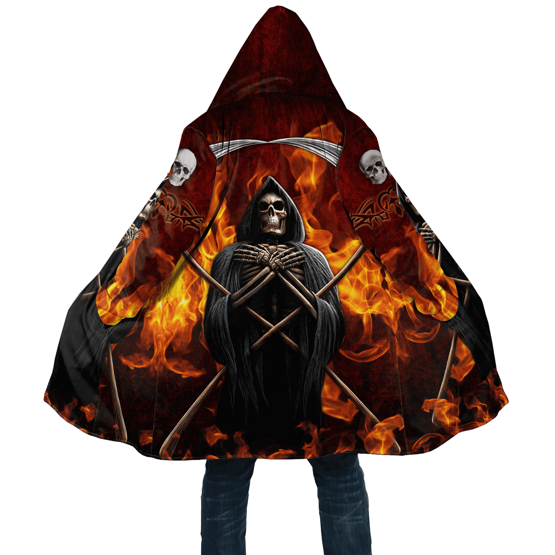 Winter Mens Cloak Gothic Reaper Skull Tattoo Fleece Hooded Cloak Coat Unisex Casual Thick Warm Cape coat, Halloween cloak coat