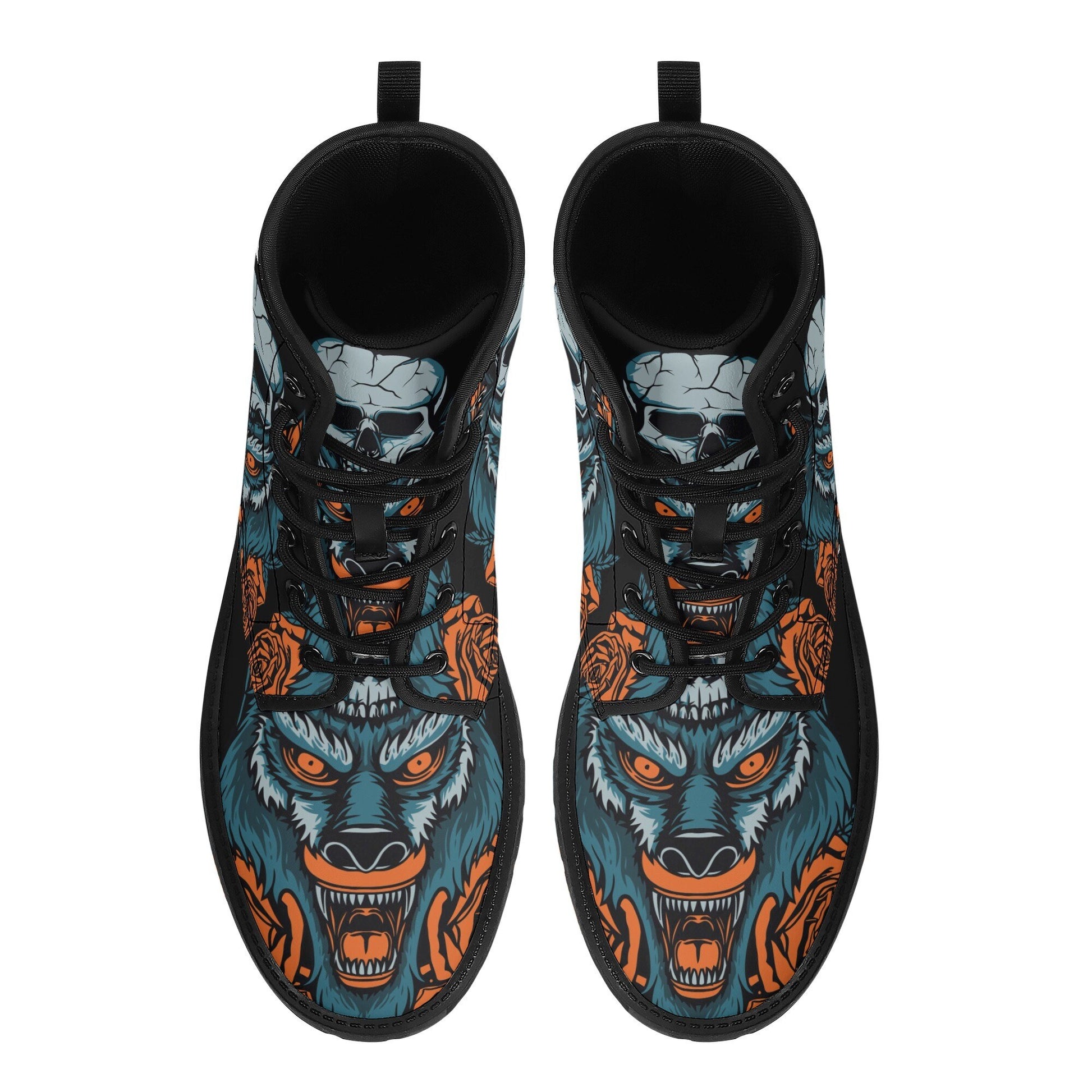 Wolf skull leather boots, Halloween skull boots for men, Horror skeleton skull boots for women, skull evil boots Grim reaper men women boots
