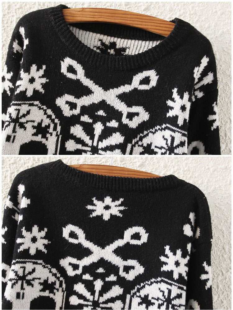 Women Pullovers Skull Design Female O Neck Outwear Loose Black Sweater Solid Cotton Loose Knitted Casual Pullovers Sweater