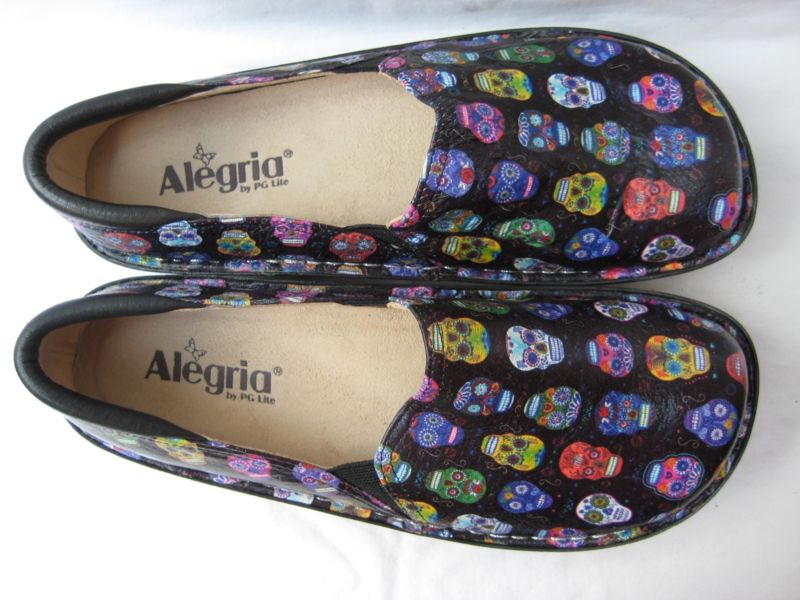 Women's Alegria "Debra" Sugar Skulls patent leather shoes 39 (US 9)