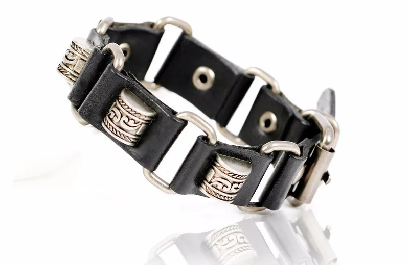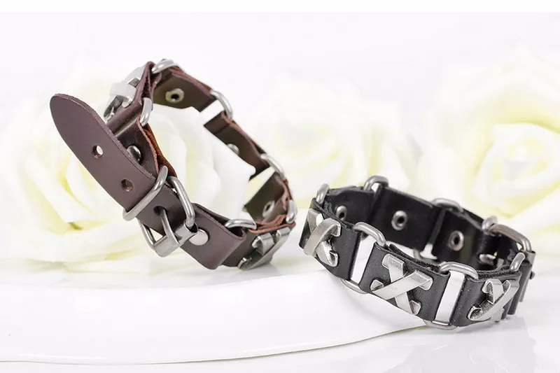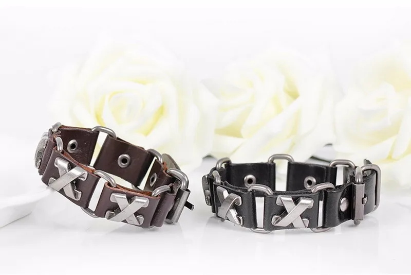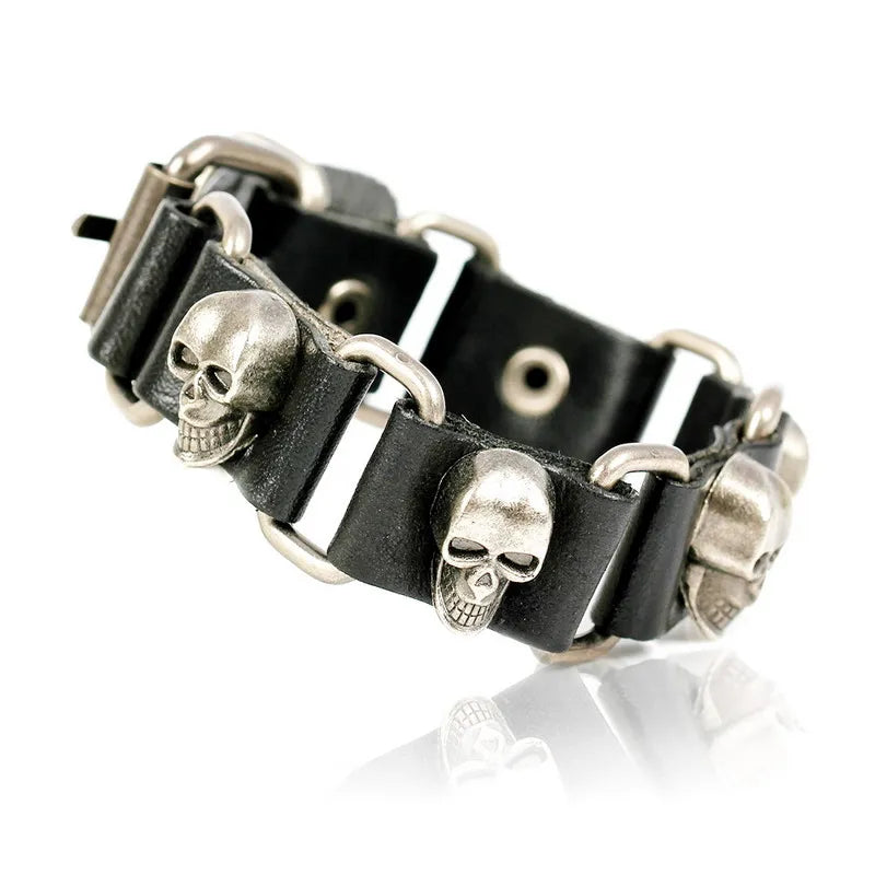 XQNI New Fashion Bangles Brand Skull Chain Leather Men's Bracelets European style Knighthood Link Charm Bracelets Jewelry.