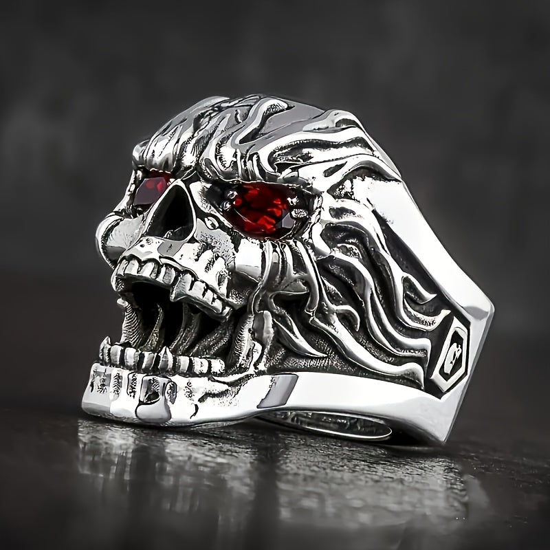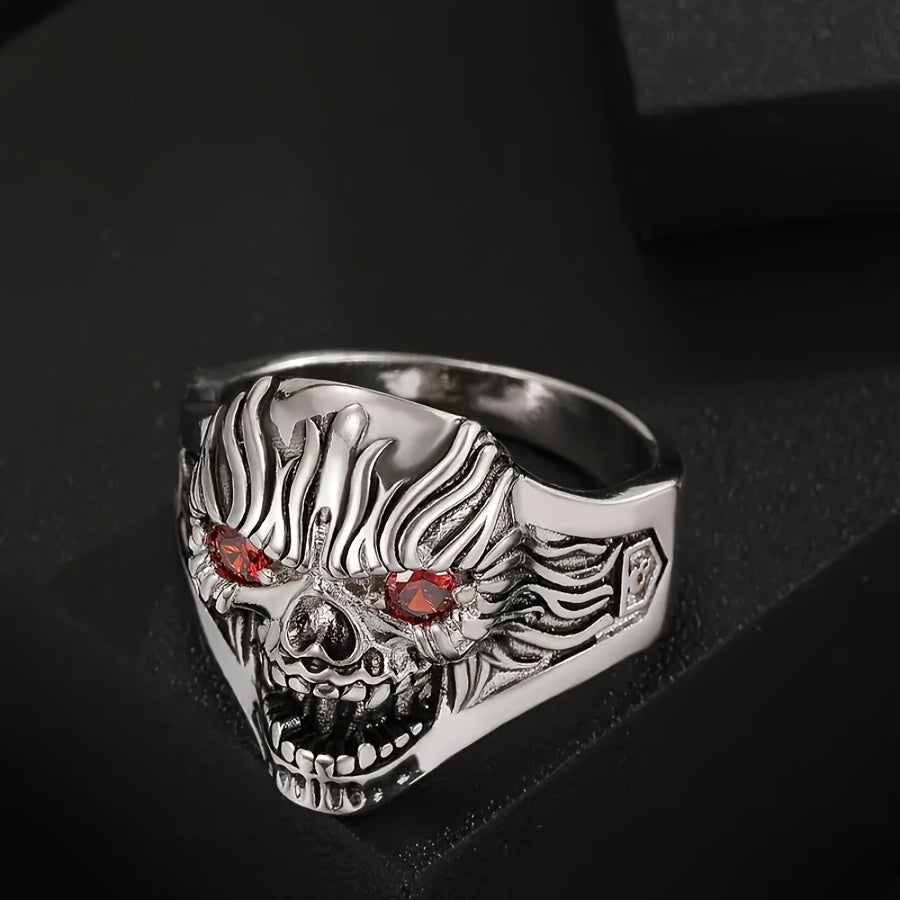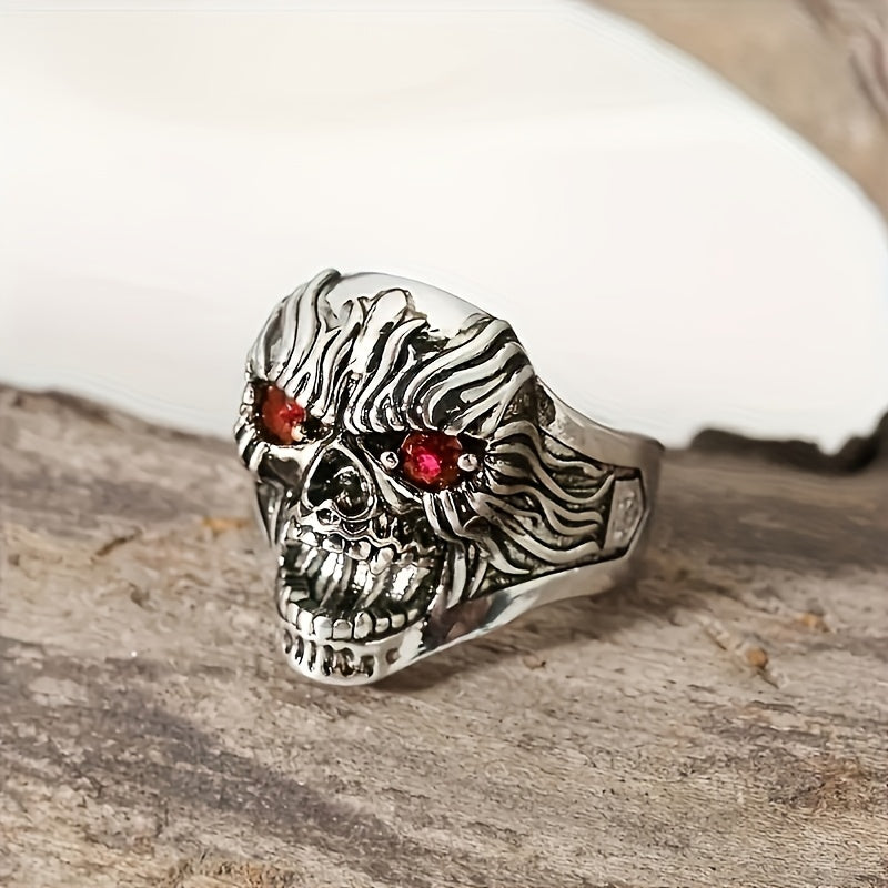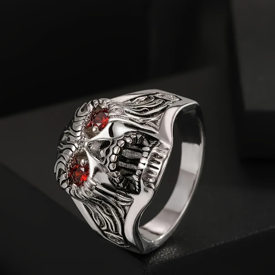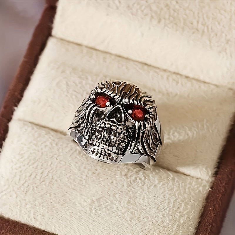 1 Luxurious Retro Skull Ring With Red Cubic Zirconia - Perfect Gift For Christmas, Anniversaries, Birthdays, And Halloween, Copper, Daily Wear, Easter