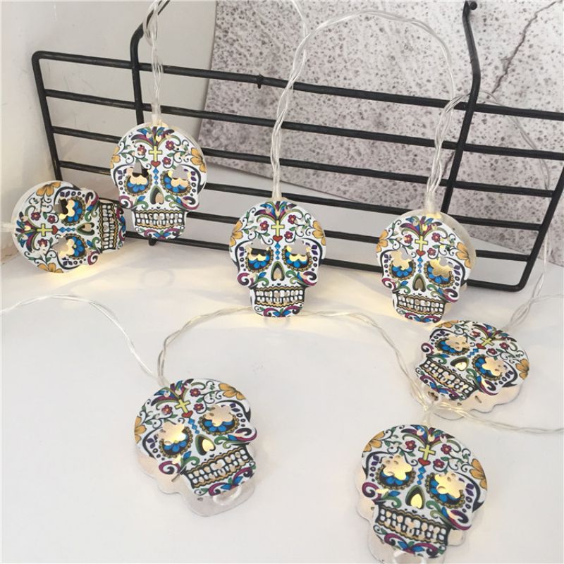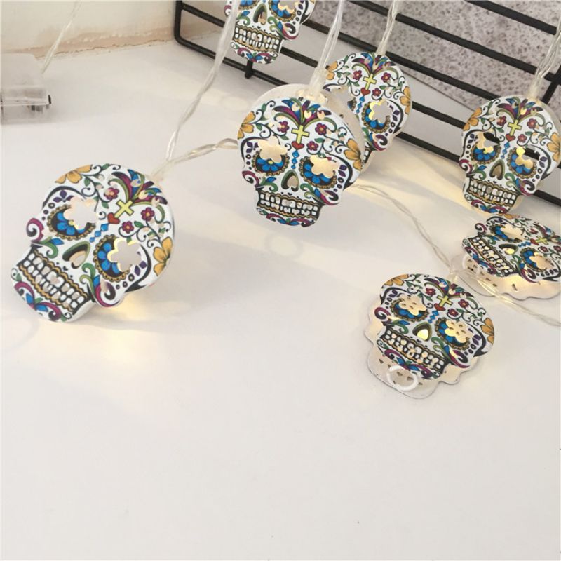 10PCS/SET Battery Halloween Holiday Christmas Skull LED String Lights
