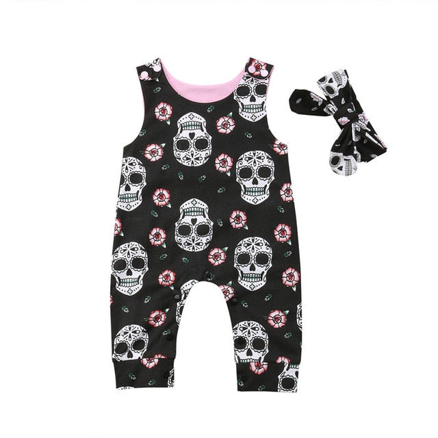 2Pcs Newborn Baby Boys Girls Skull Romper Jumpsuit