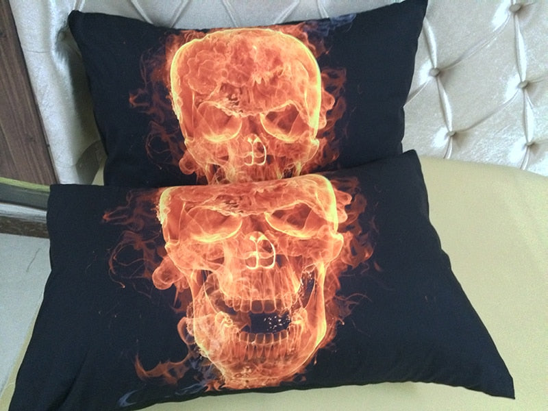 3D Skull Bedding sets Fire Skull head 3pcs Bed Linen Duvet Cover