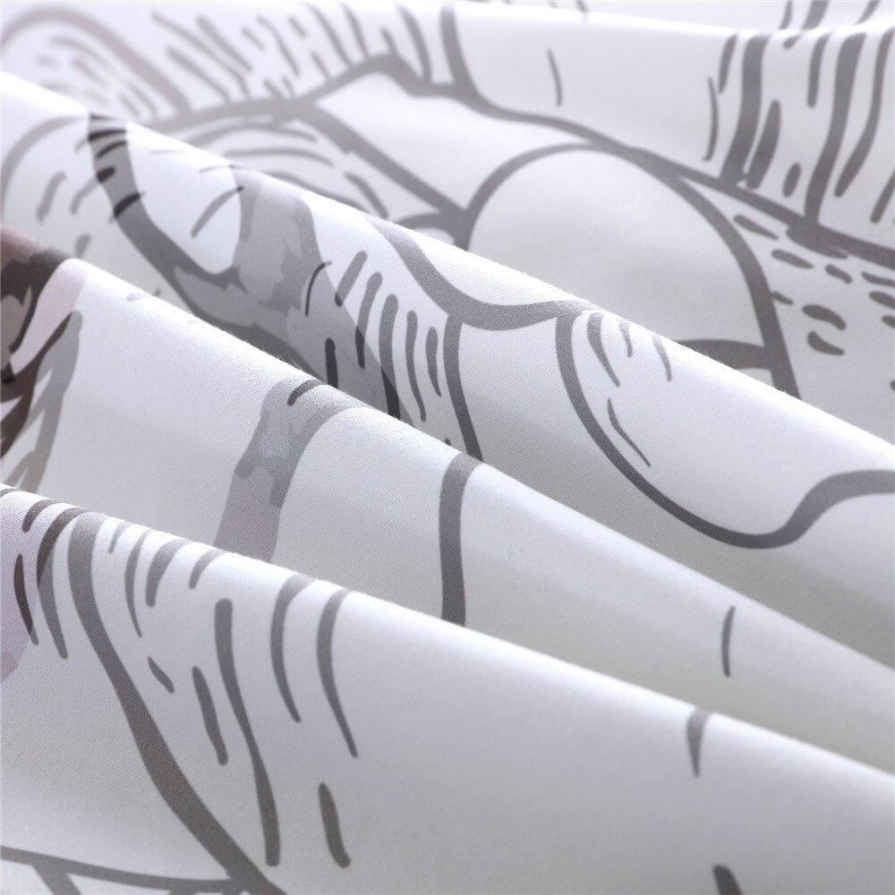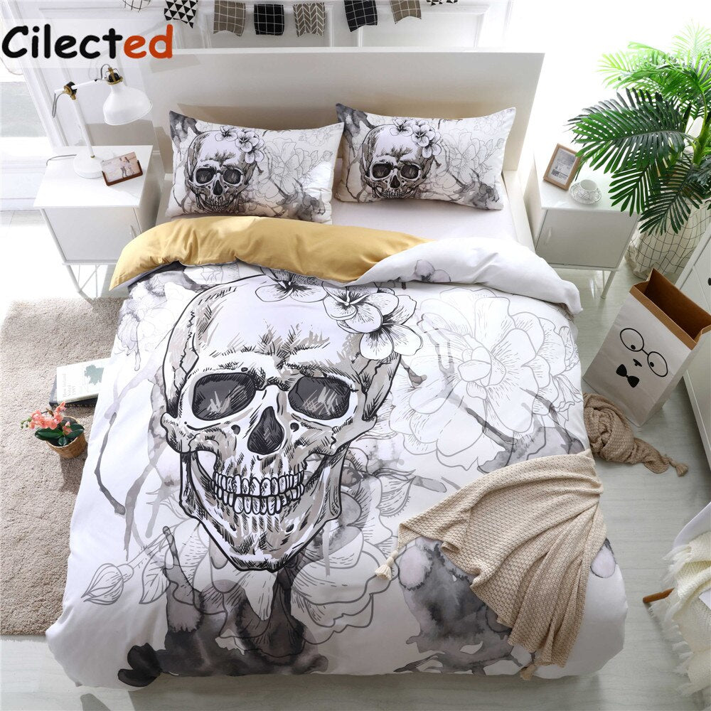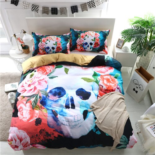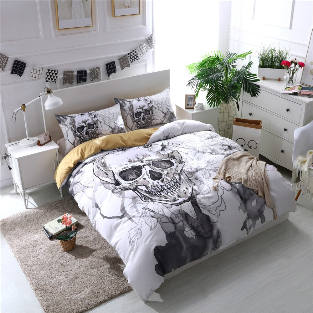 Black And White Skull Duvet Cover With Pillowcases 3D Flowers Print Soft Bed