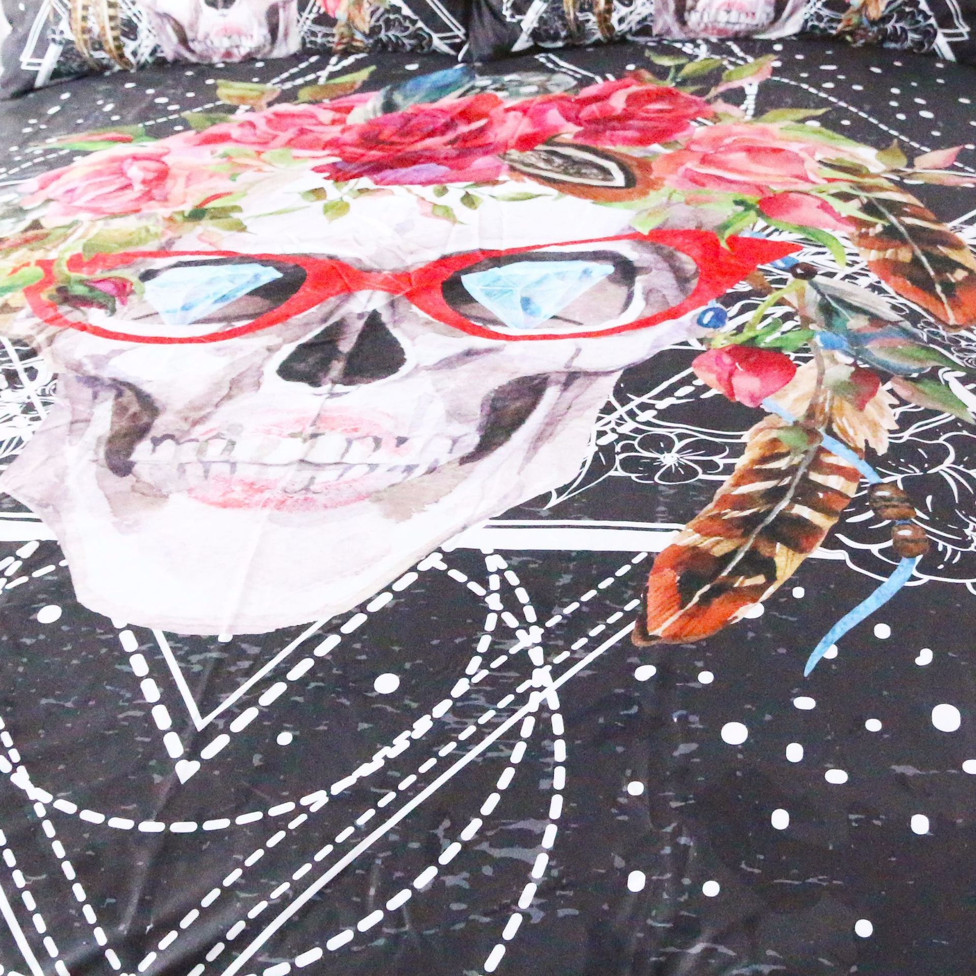 Black Sugar Skulls Comforter Bedding Sets Brand Home King Bedclothes Cotton
