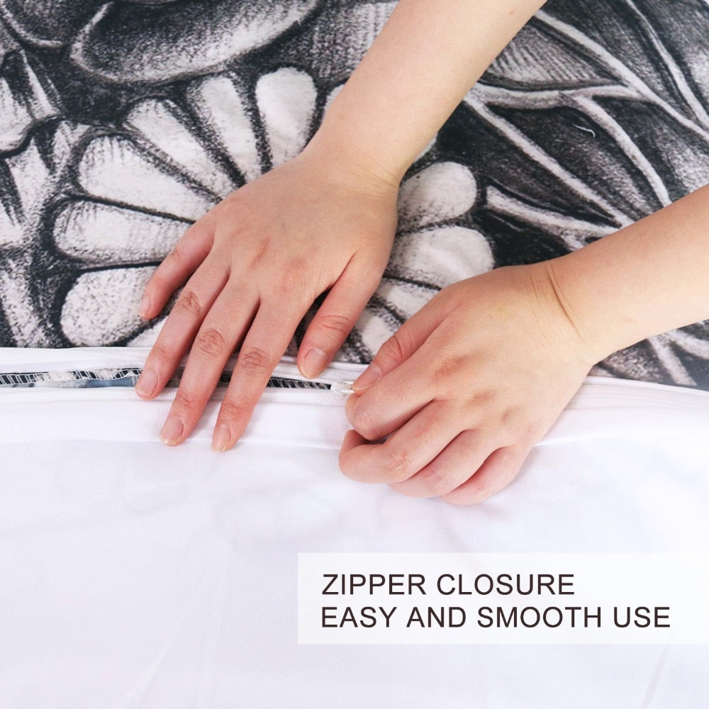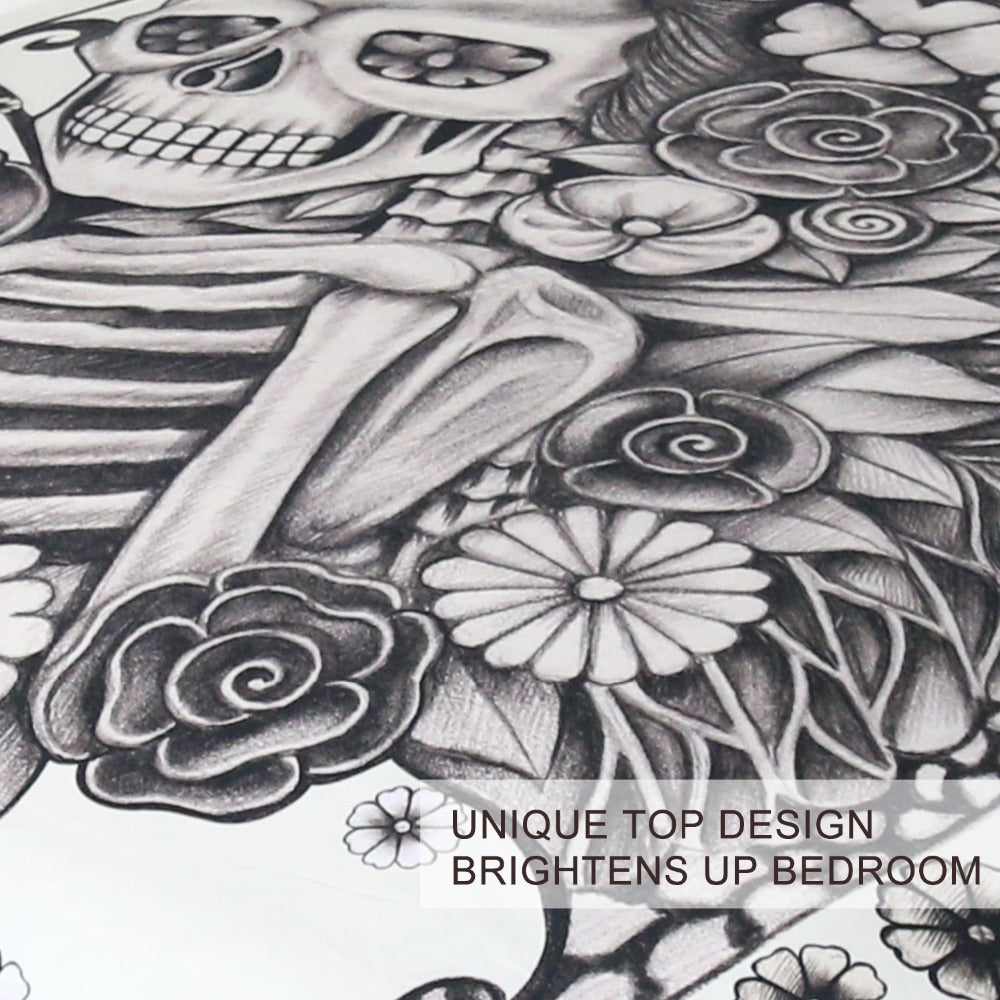 BlessLiving Gothic Skull Bedding Set Retro Butterfly Rose Comforter Cover Black White Skeleton Bedspread Vintage Duvet Cover