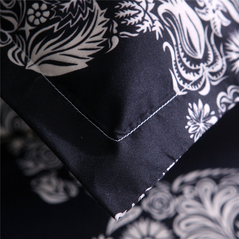 Black Color Duvet Cover Queen Size Luxury Sugar Skull Bedding Set