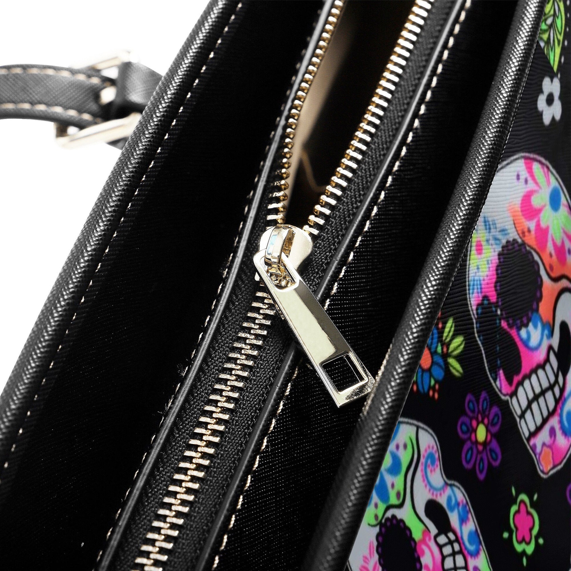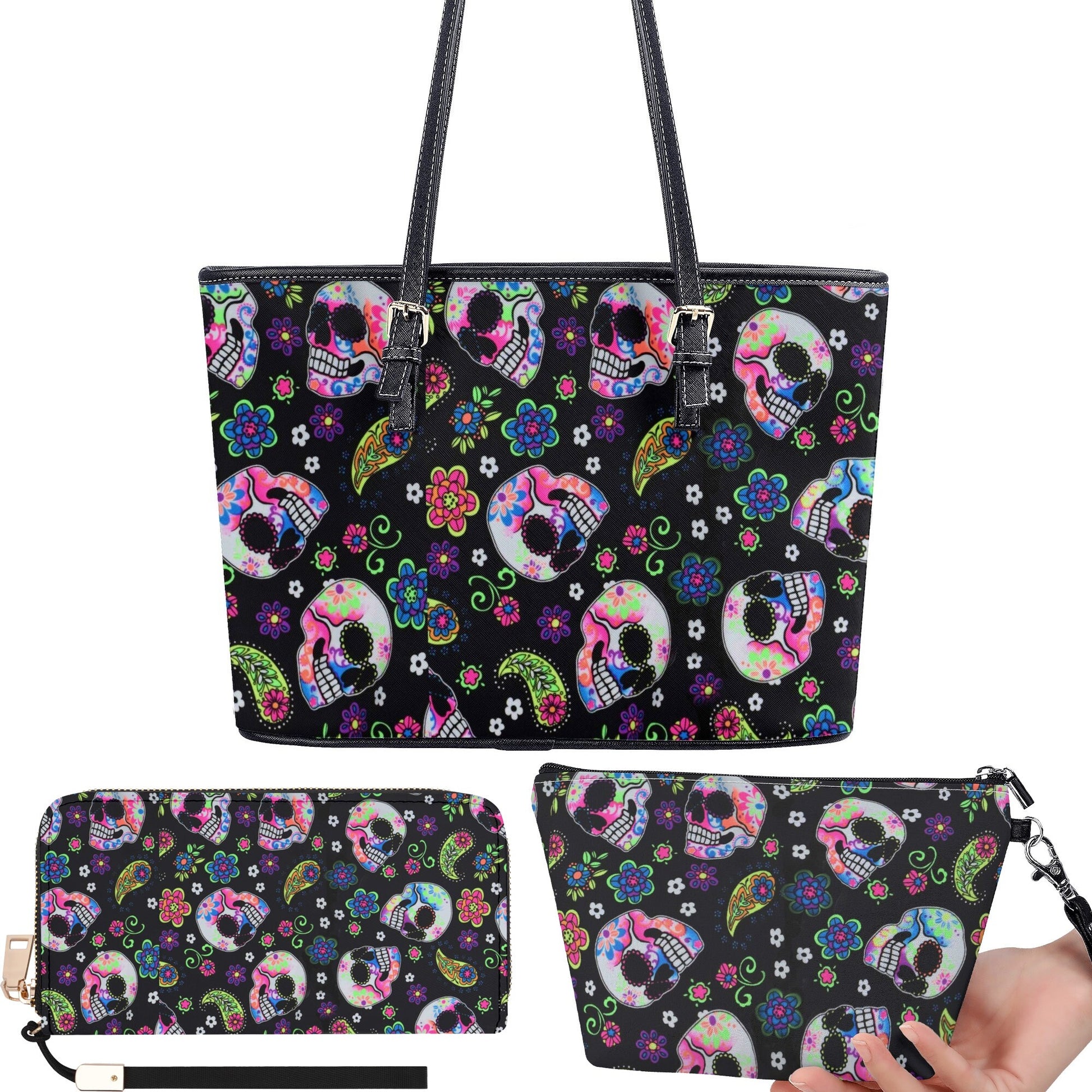 Calaveras skull tote bag, sugar skull wallet, day of the dead purse, floral skull bag with shoulder strap, cinco de mayo skull purse bag