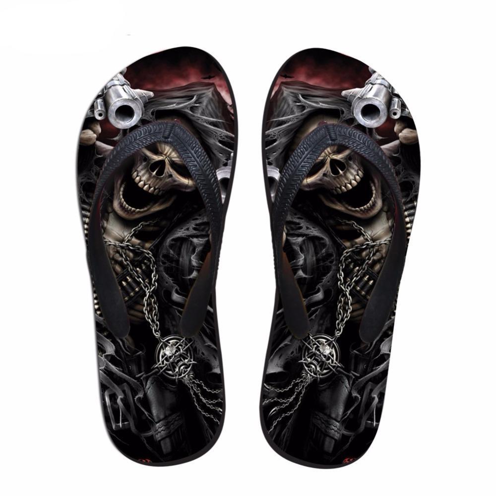Pattern: 3D Cool Skull Printed Casual Men Flip Flops