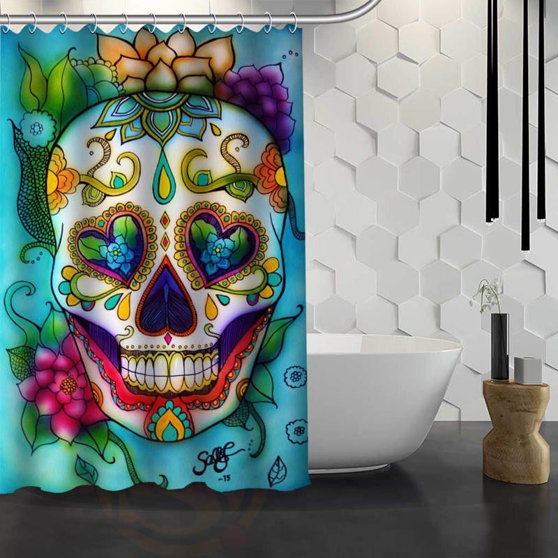 CHARMHOME Hot Sale Custom Colorful flower skull Custom Shower Curtain Waterproof Fabric Bath Curtain for Bathroom