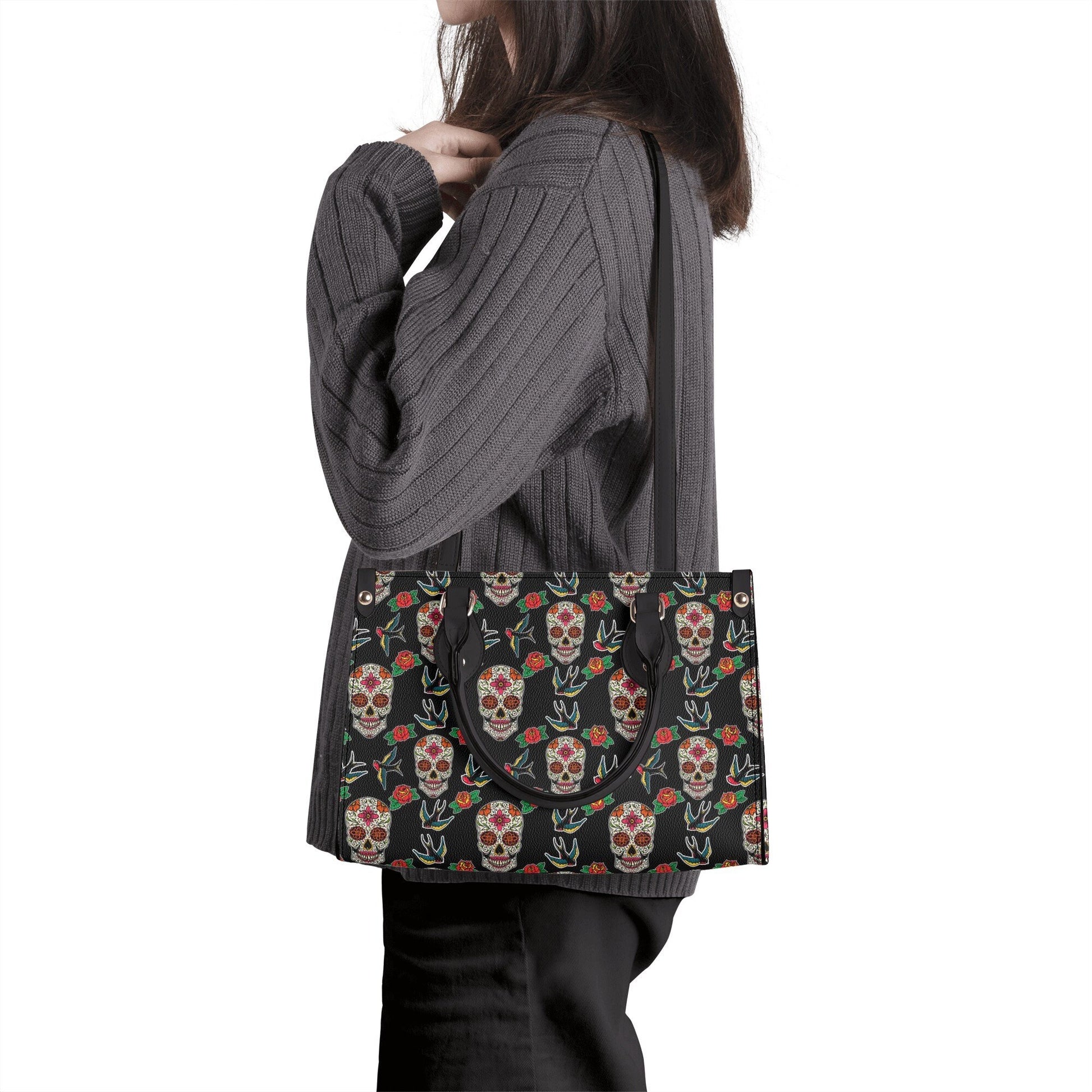 Floral sugar skull handbag with strap, sugar skull handbag, sugar skull girl bag with shoulder strap, day of the dead women's handbag, sugar skull bag with shoulder strap, calaveras skull tote bag, sugar skull crossbody bag, day of the dead handmade bag, cinco de mayo skull tote bag, mexican skull p Size: LENGTH x WIDTH x HEIGHT 29cm x 11cm x 20cm 11.4in x 4.3in x 7.9in * The main material of this handbag is PU leather * Smooth zipper and all over printing customized style * Main compartment design with two top handles maintains balance * One inside pocket with sewn-in and non-removable shoulder strap * White & Black color for different style with wearing outfits * This handbag is a great gift for girls and moms. Suitable for commuting and traveling. * You can put your phone, keys, and small items you need everyday. CARE INSTRUCTIONS: Regular wiping is recommended with cold water and a wet cloth. And just dry it to get rid of the smell. (It's normal to smell something when you receive it. Leave it in the air for 2-3 days to remove) ======== All products in our store are only manufactured upon receiving an order from the customer. Please carefully review the product description and dimensions in the illustrative images before placing an order. The following cases are not eligible for return/exchange: 1. The product you receive matches the description. 2. The product dimensions (with illustrative images describing the dimensions) you receive match the description. 3. The product has been customized as per your request (e.g., printed with your name/image).