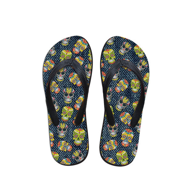 Cool Denim Skull Fashion Flip Flops for Women Personalized Soft Casual Rubber Flipflops