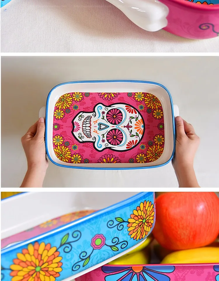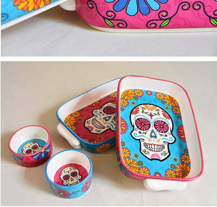 Creative color sugar Skull plate Decor bowl ears squid plate deep plate punk Skull