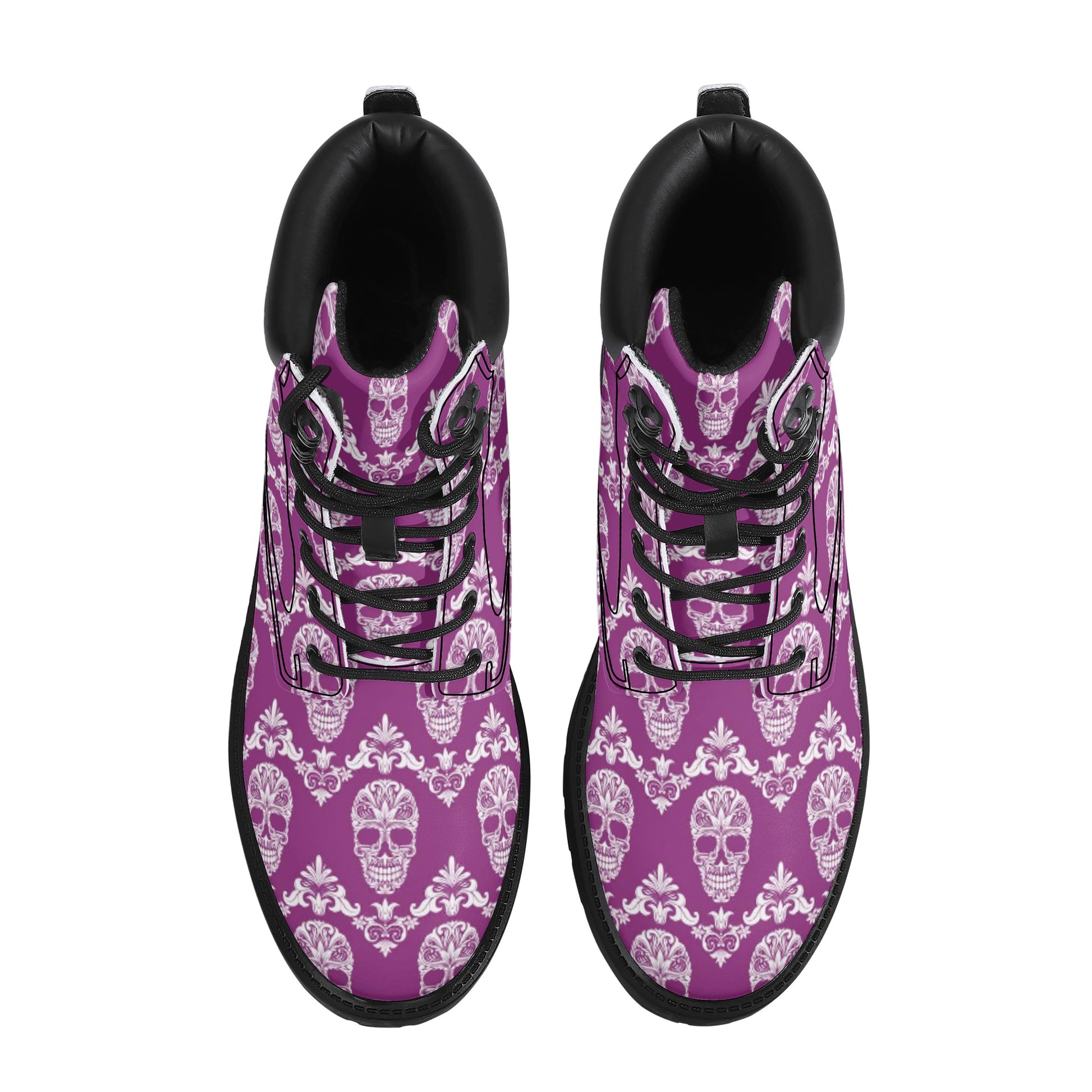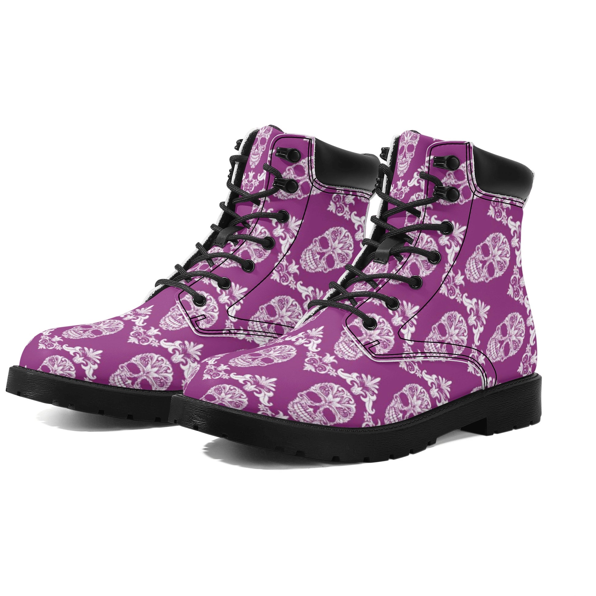 Day of the dead candy skull calaveras Men's All Season Leather Boots