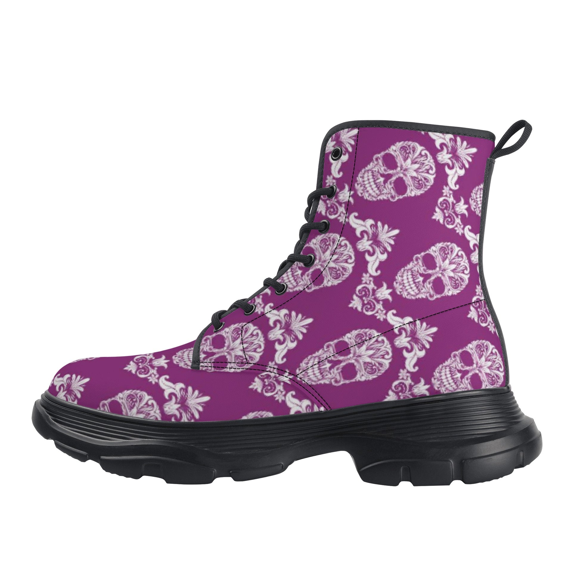 Day of the dead candy skull calaveras Men's Leather Chunky Boots