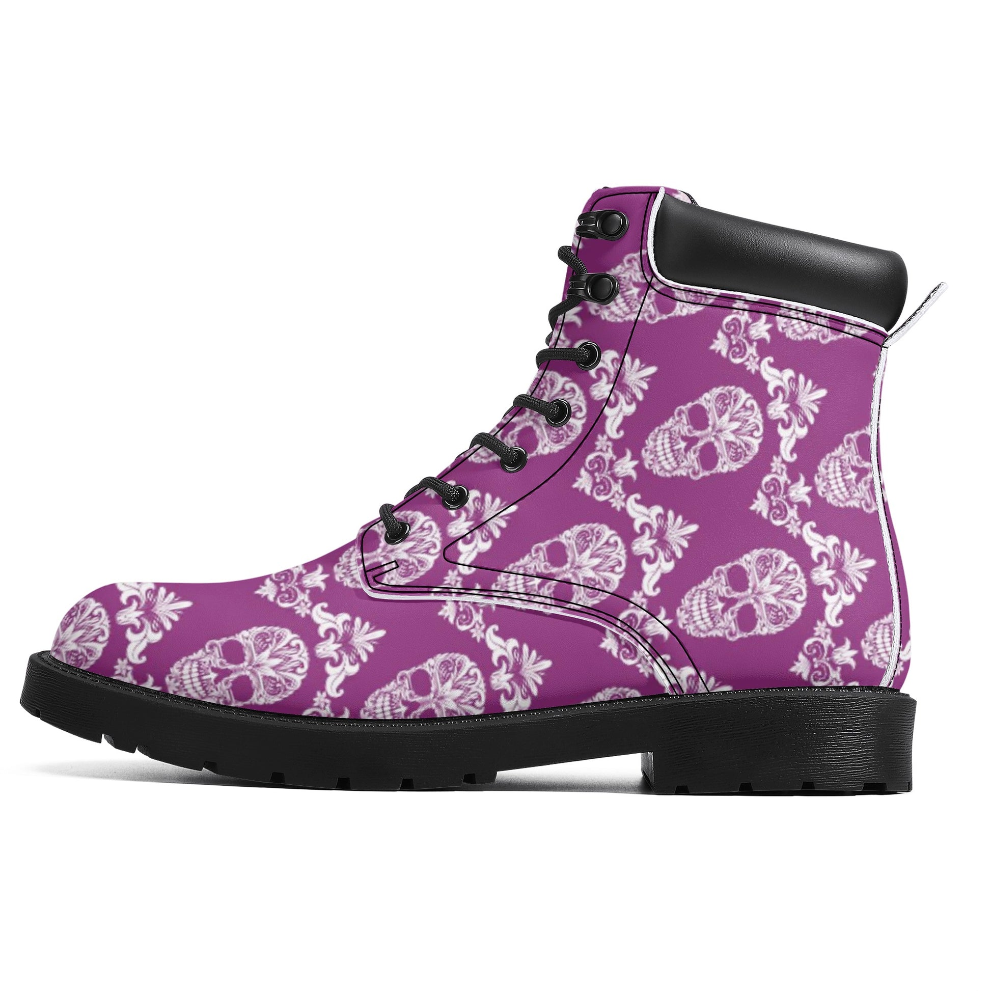 Day of the dead candy skull calaveras Women's All Season Leather Boots