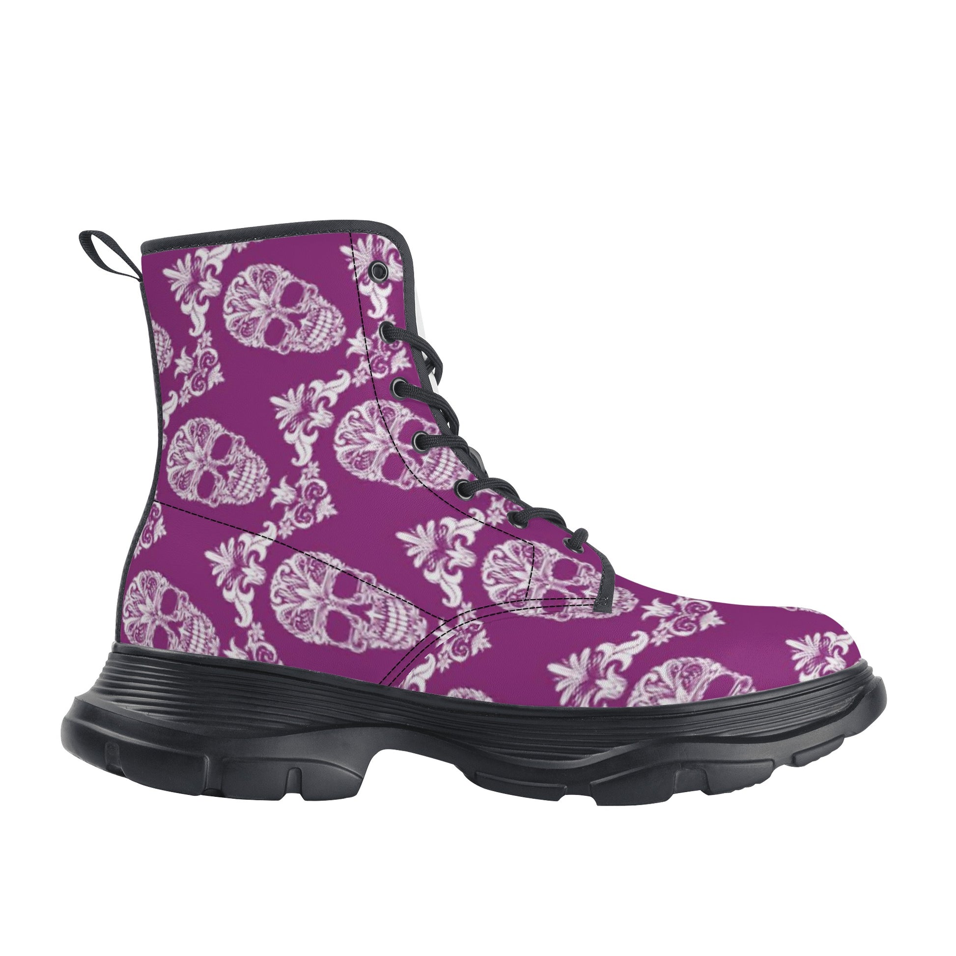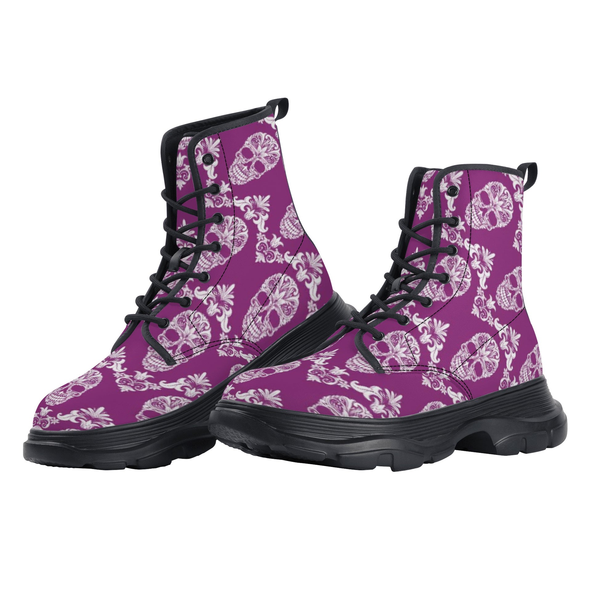 Day of the dead candy skull calaveras Women's Leather Chunky Boots