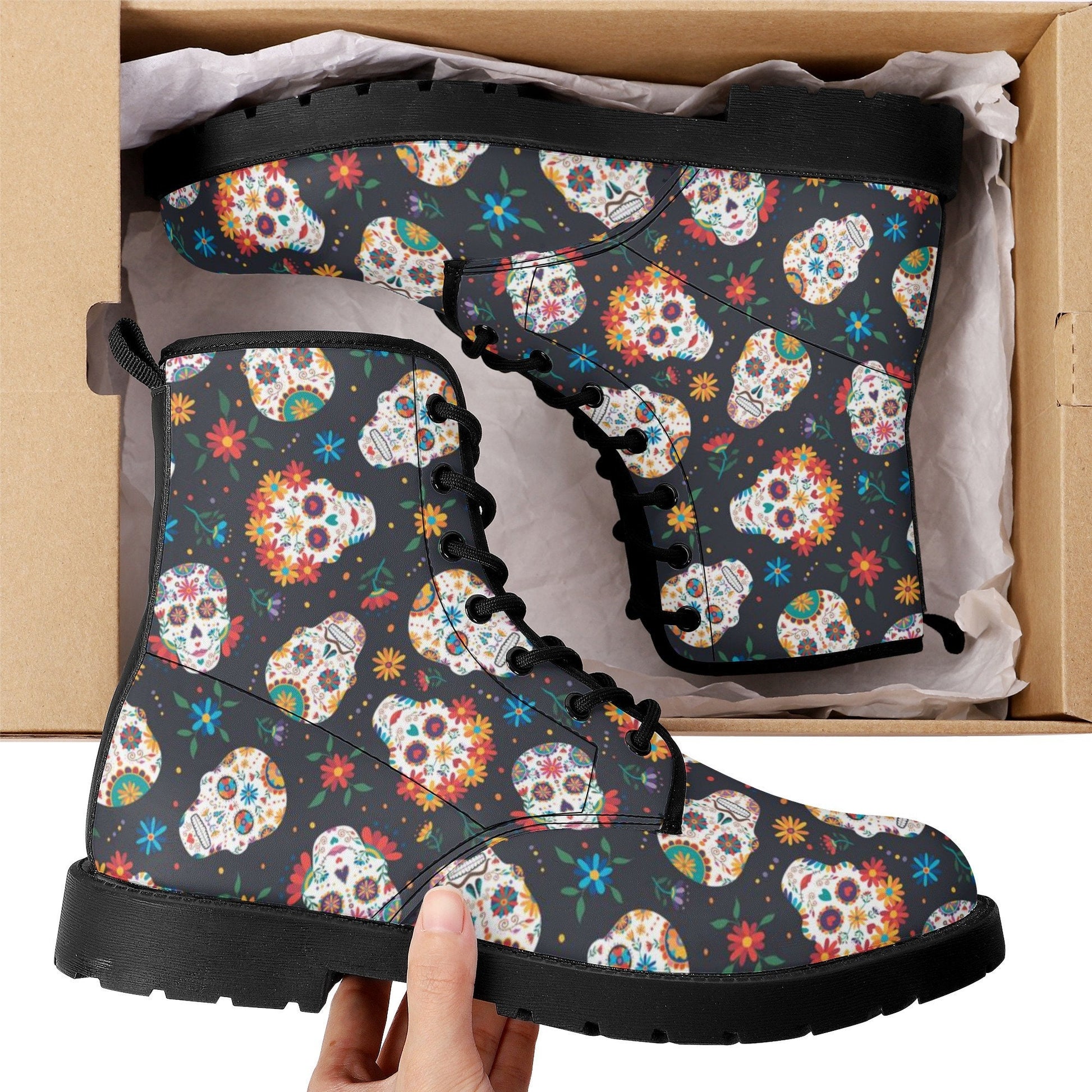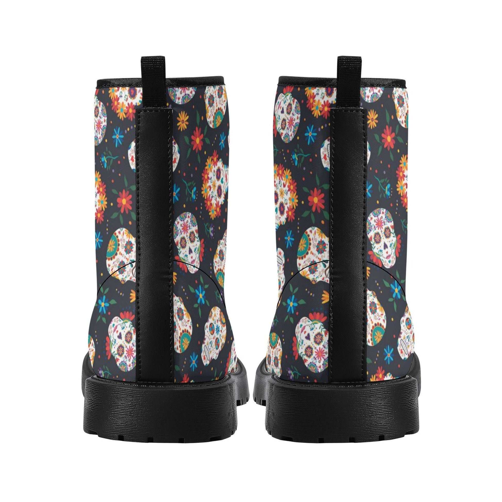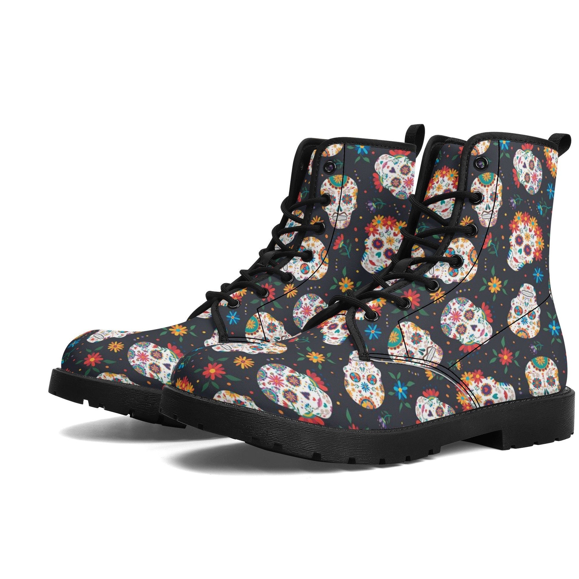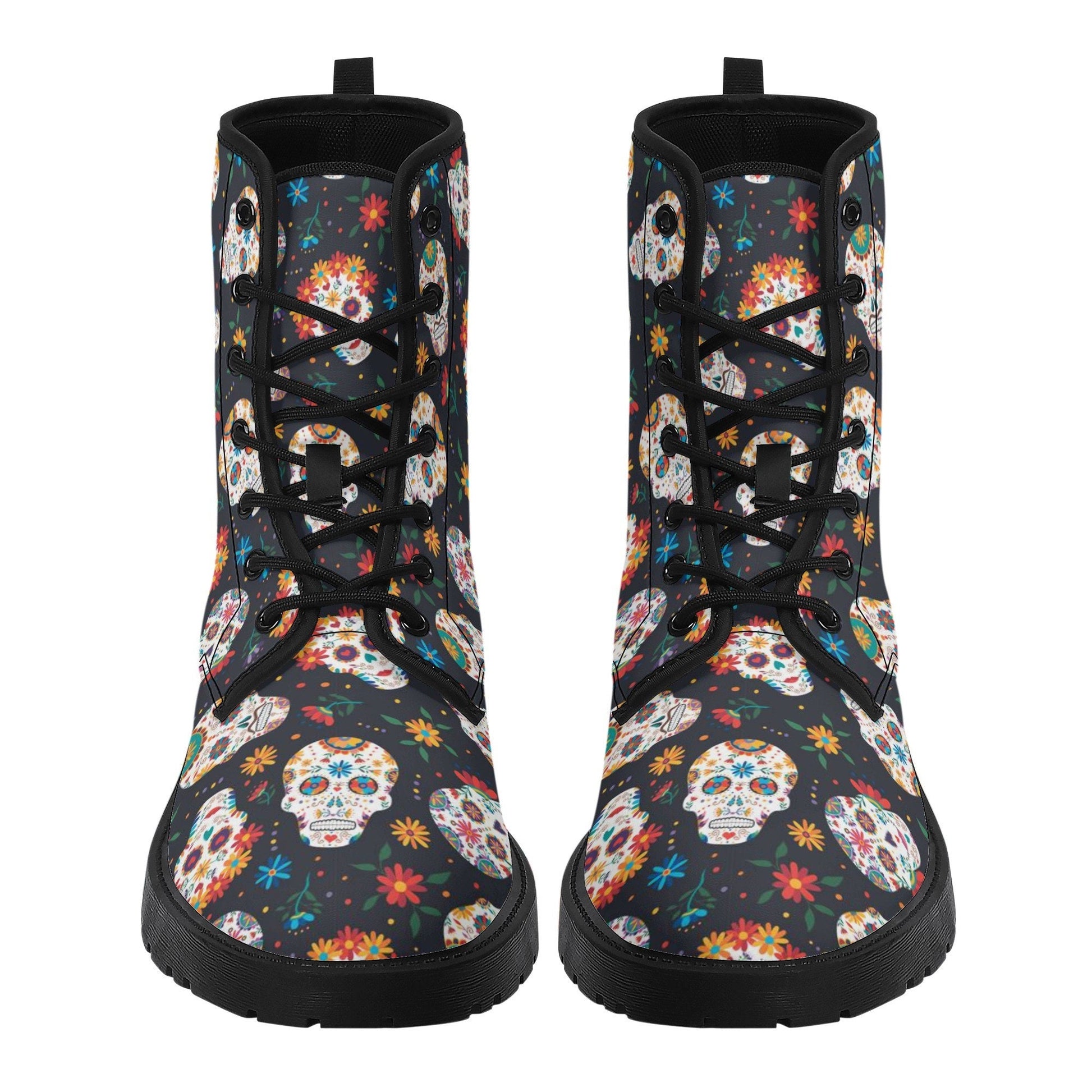 Day of the dead leather boots, sugar skull boots for men women sugar skull women's boots, candy skull women's boots, Calaveras leather boots,