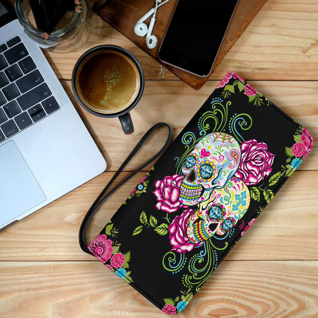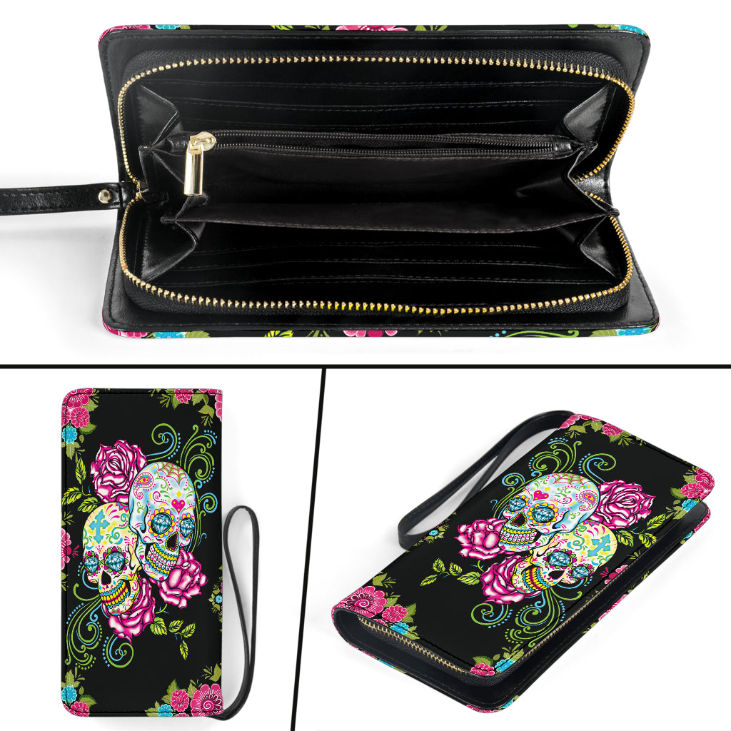 - Finished with a zip closure for easy access and a convenient wristlet strap.
