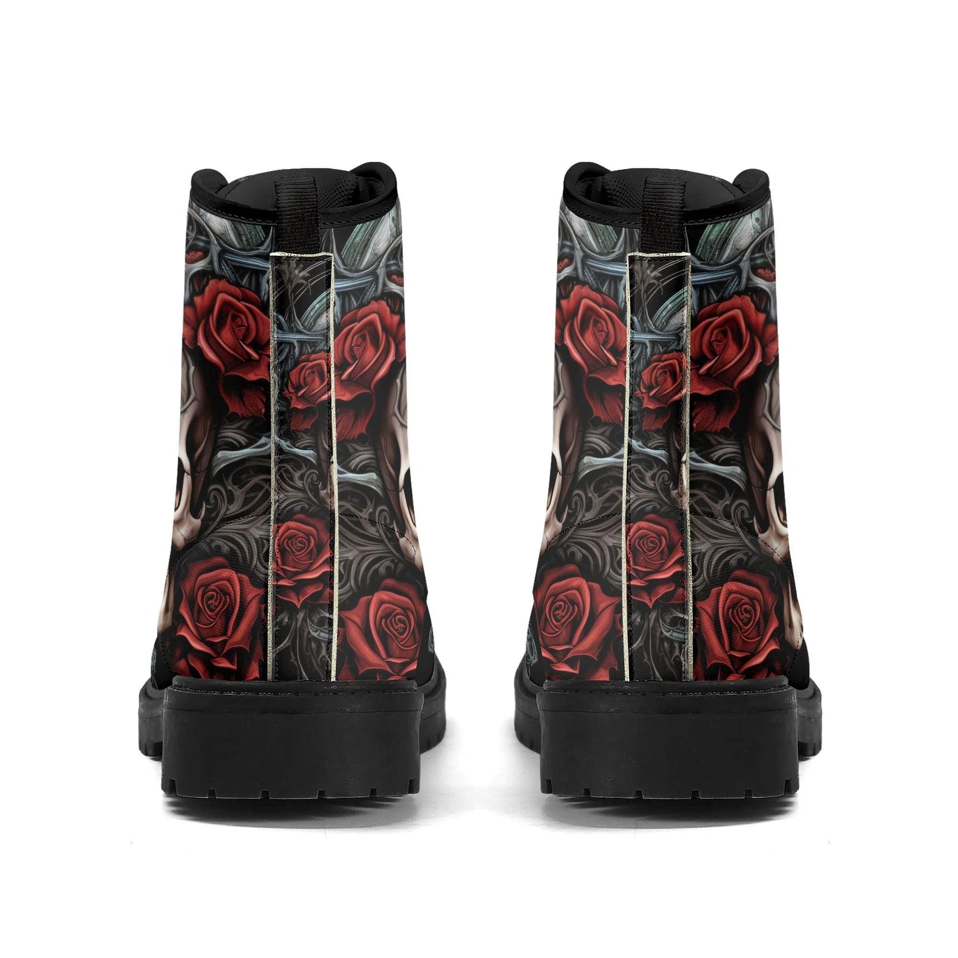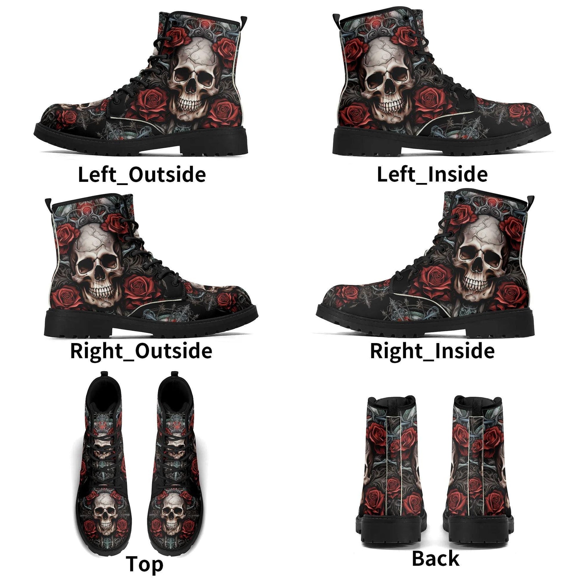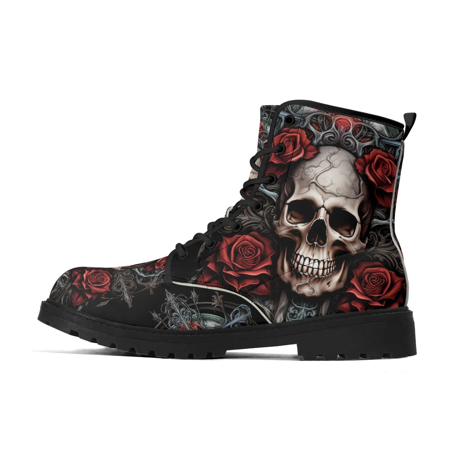 Hooded skull combat boots, biker skull Zip-up boots, flaming skull Duck boots, evil face men women boots, horror Engineer boots, reaper skull Wellington boots, death with scythes Mountaineering boots, rose skull Hiking boots, grim reaper Mu