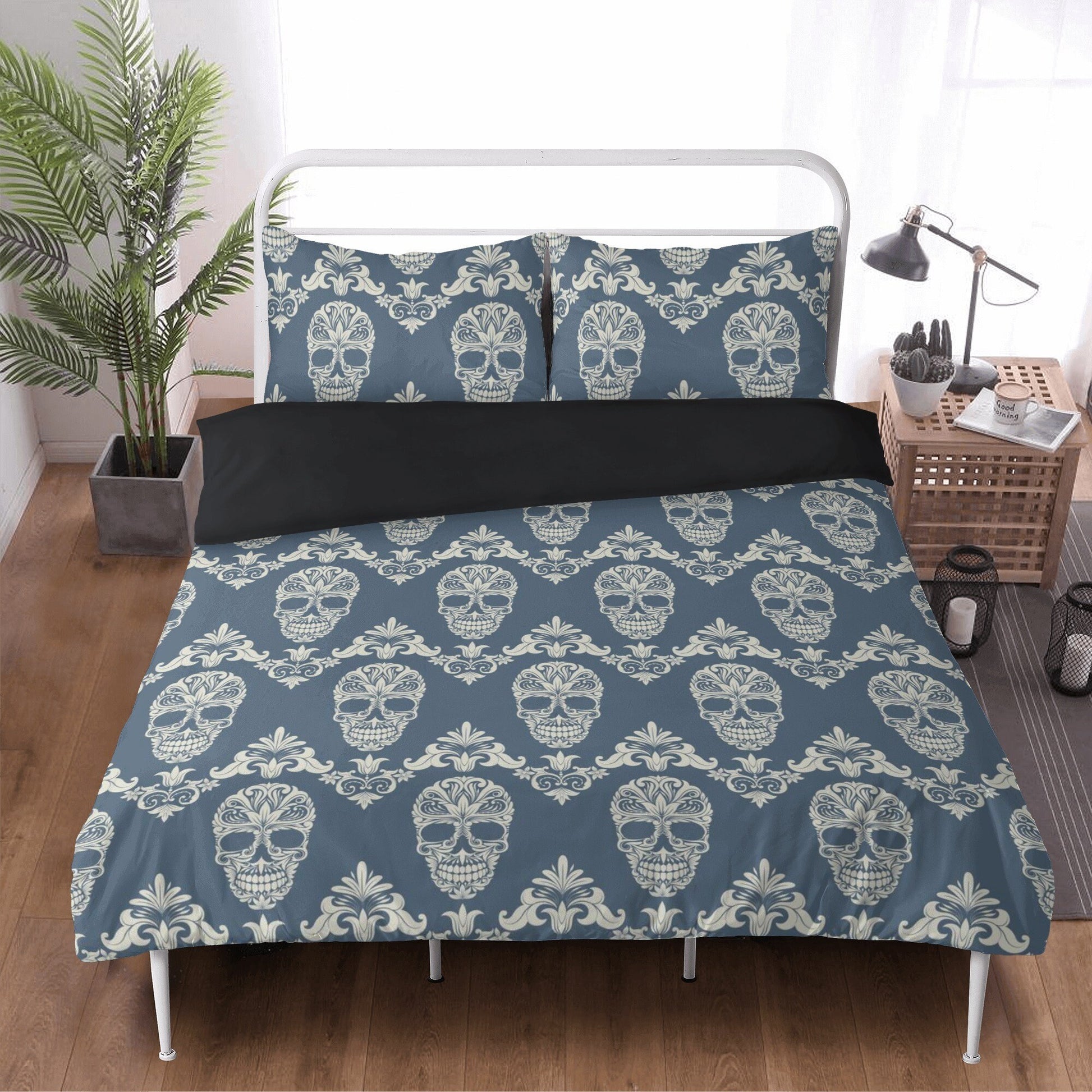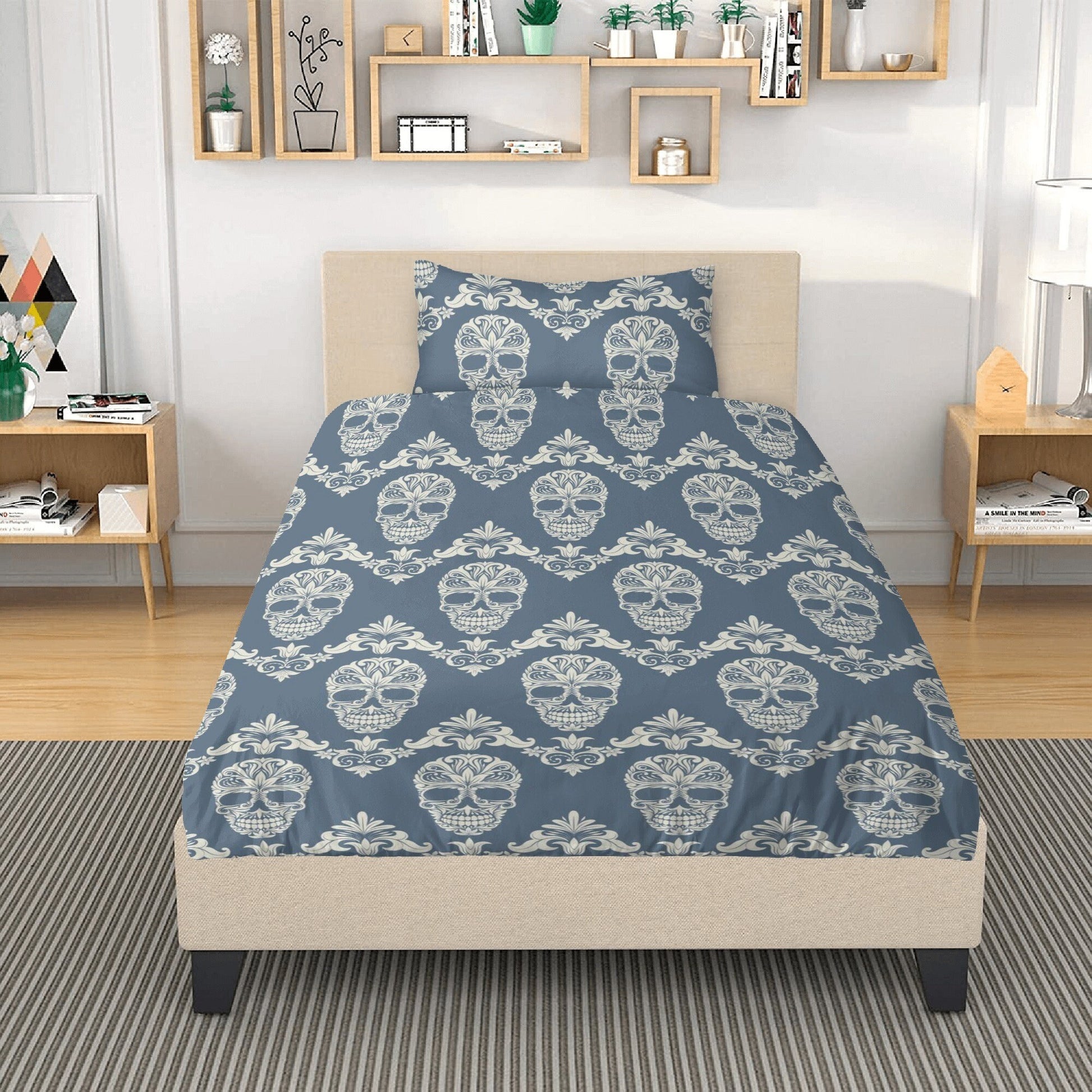 Dia de los muertos skull comforter, dia de los muertos skull pillowcase, floral sugar skull bedding, mexico bed cover, floral sugar skull be