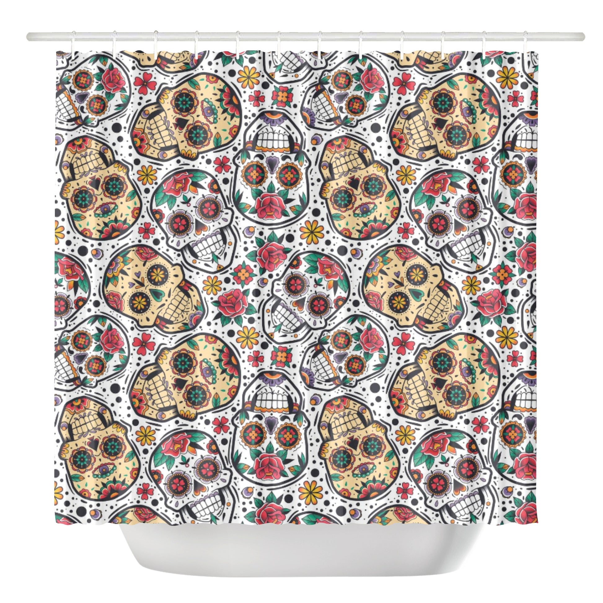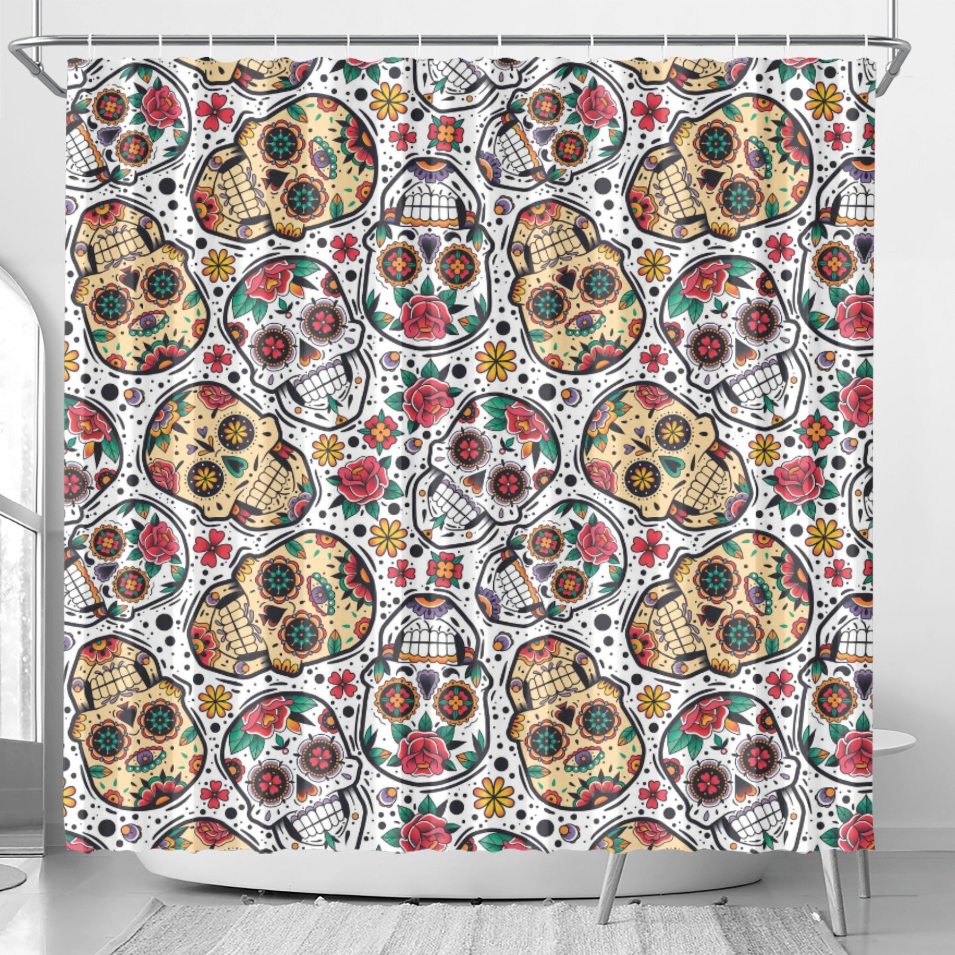 Sugar skull bath room shower curtain, day of the dead shower curtain, Dia de los muertos shower curtain, Halloween skeleton gothic shower curtain, sugar skull bath room decoration, day of the dead bath room decoration
