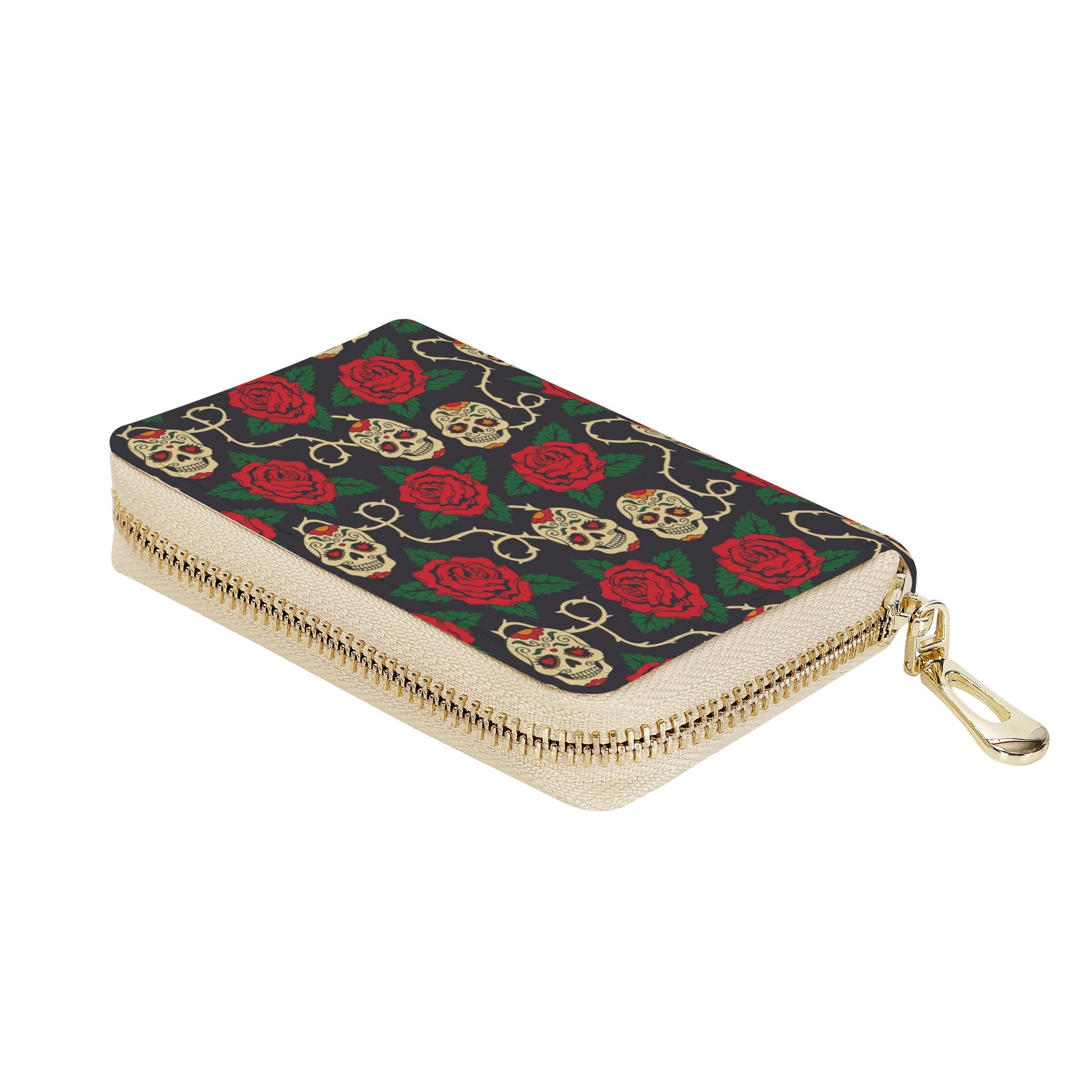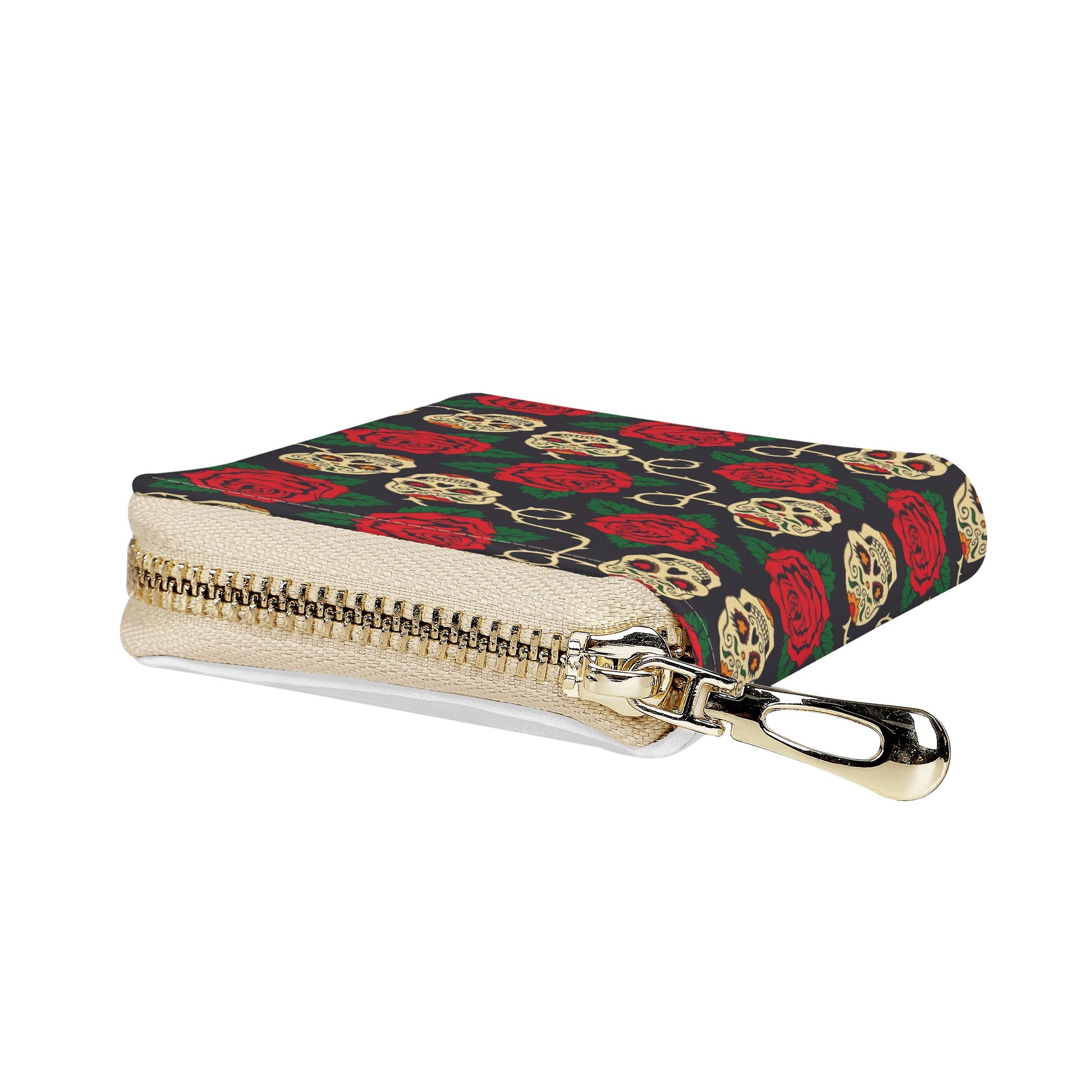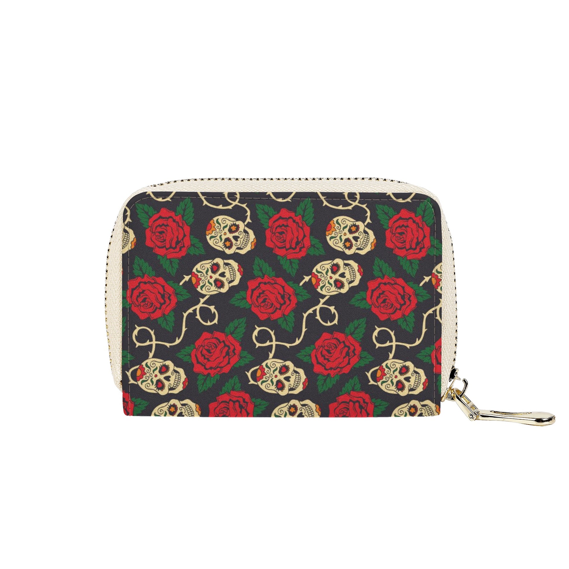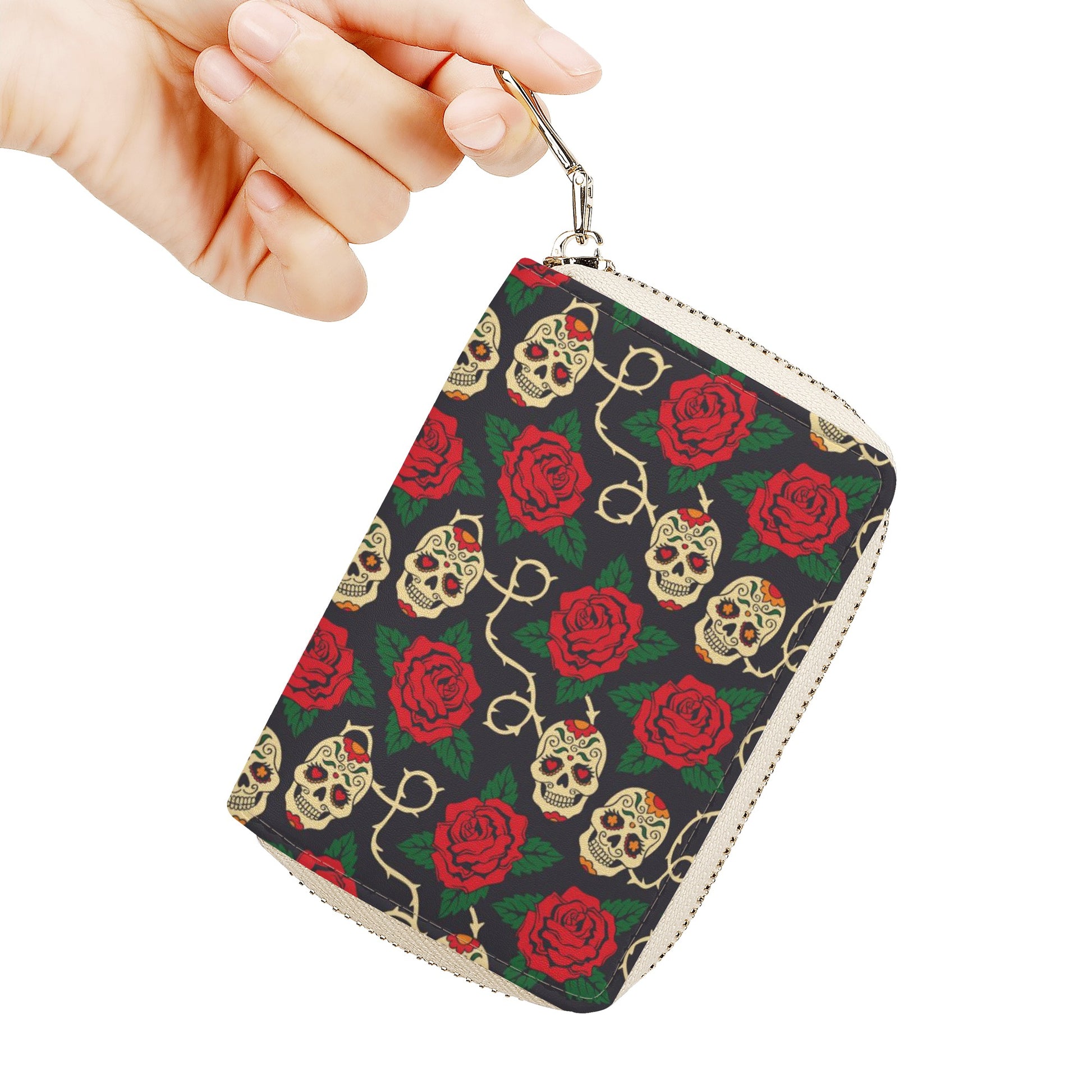 Sugar skull card holder bag, sugar skull wallet, sugar skull coin wallet, day of the dead wallet, day of the dead coin card holder, grim reaper skull Halloween coin card holder, skeleton coin card holder, gothic horror skull coin card holder