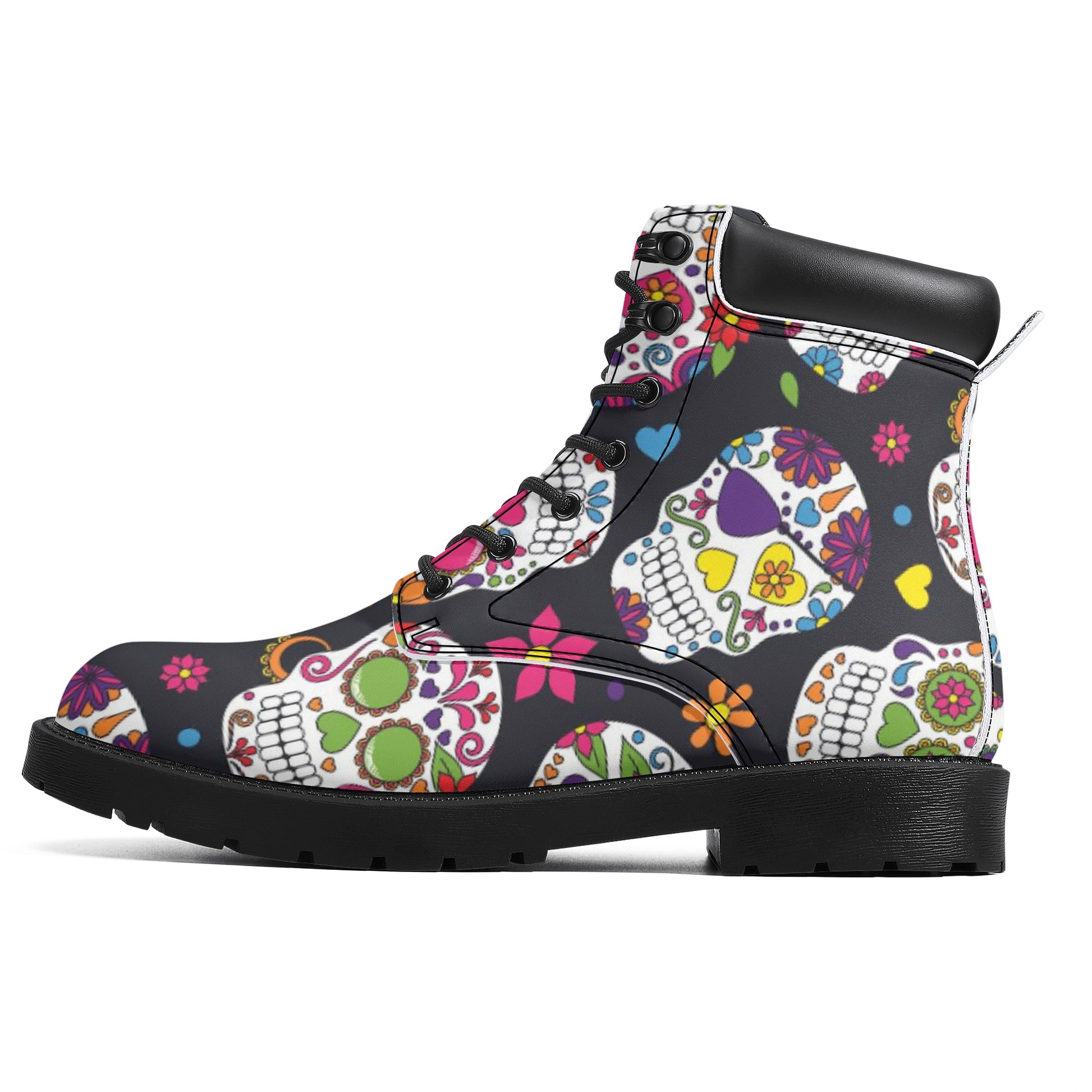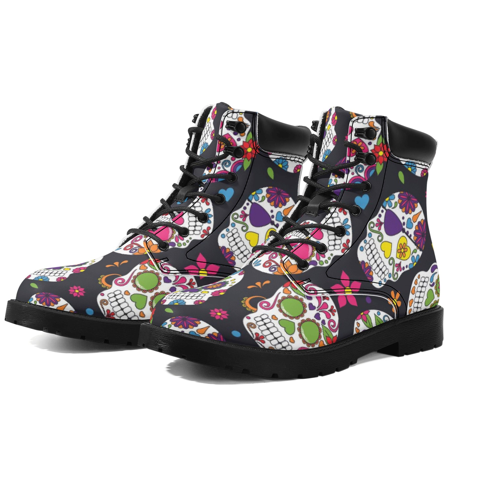 Dia de los muertos sugar skull pattern Men's All Season Leather Boots