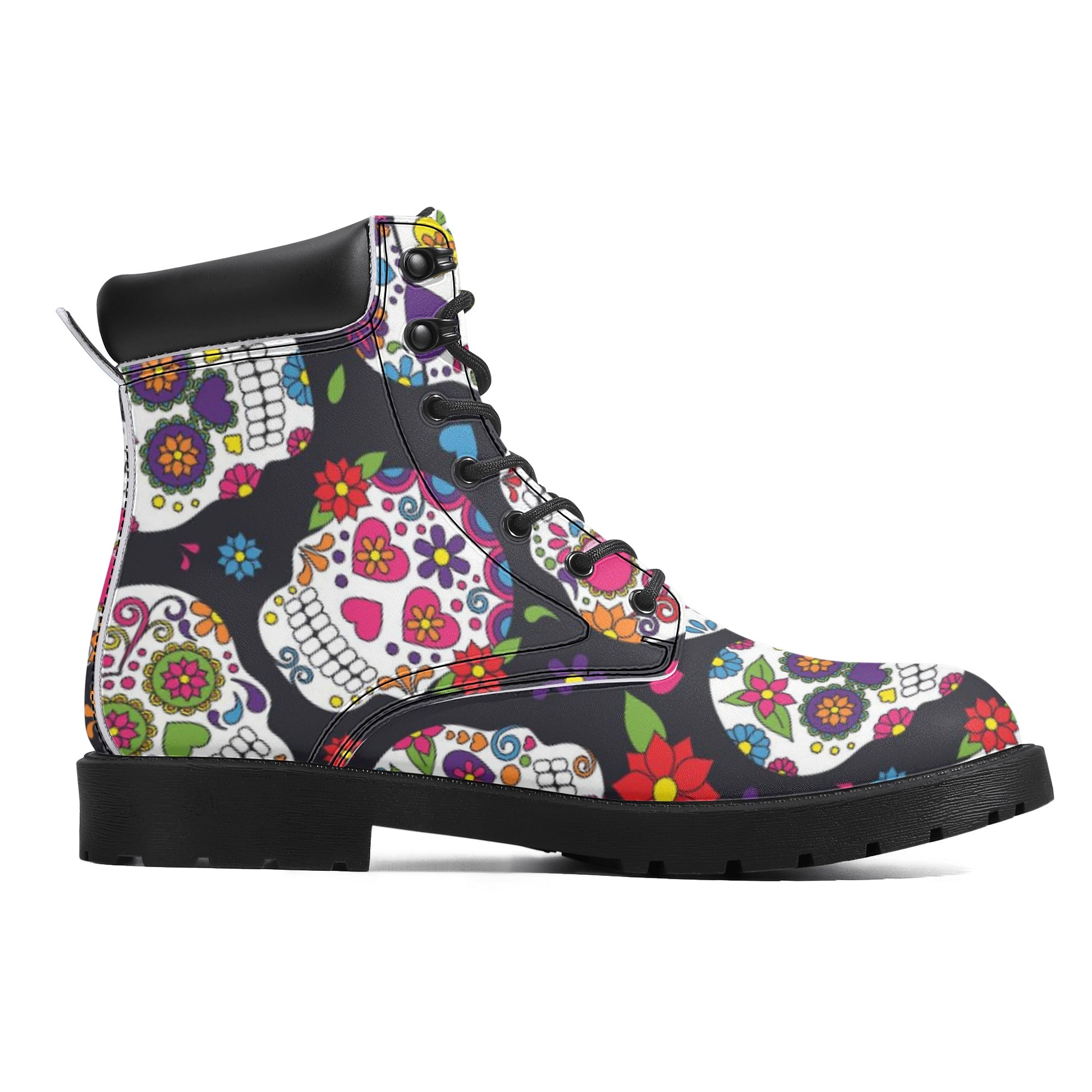 Dia de los muertos sugar skull pattern Women's All Season Leather Boots