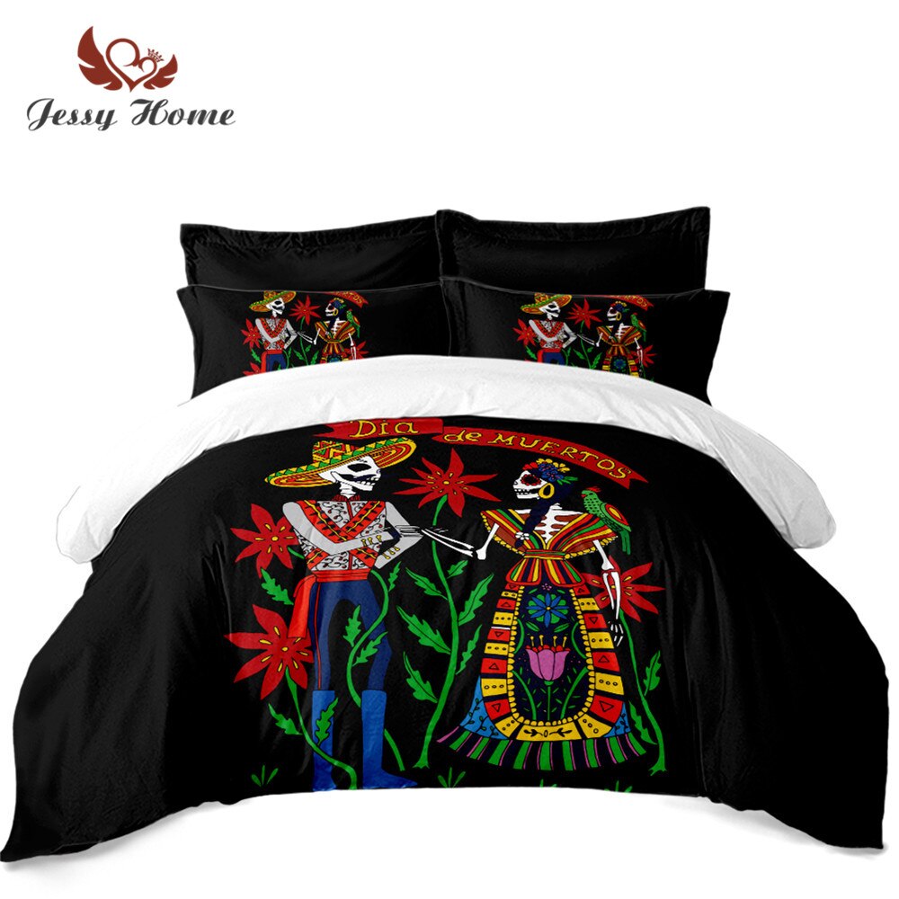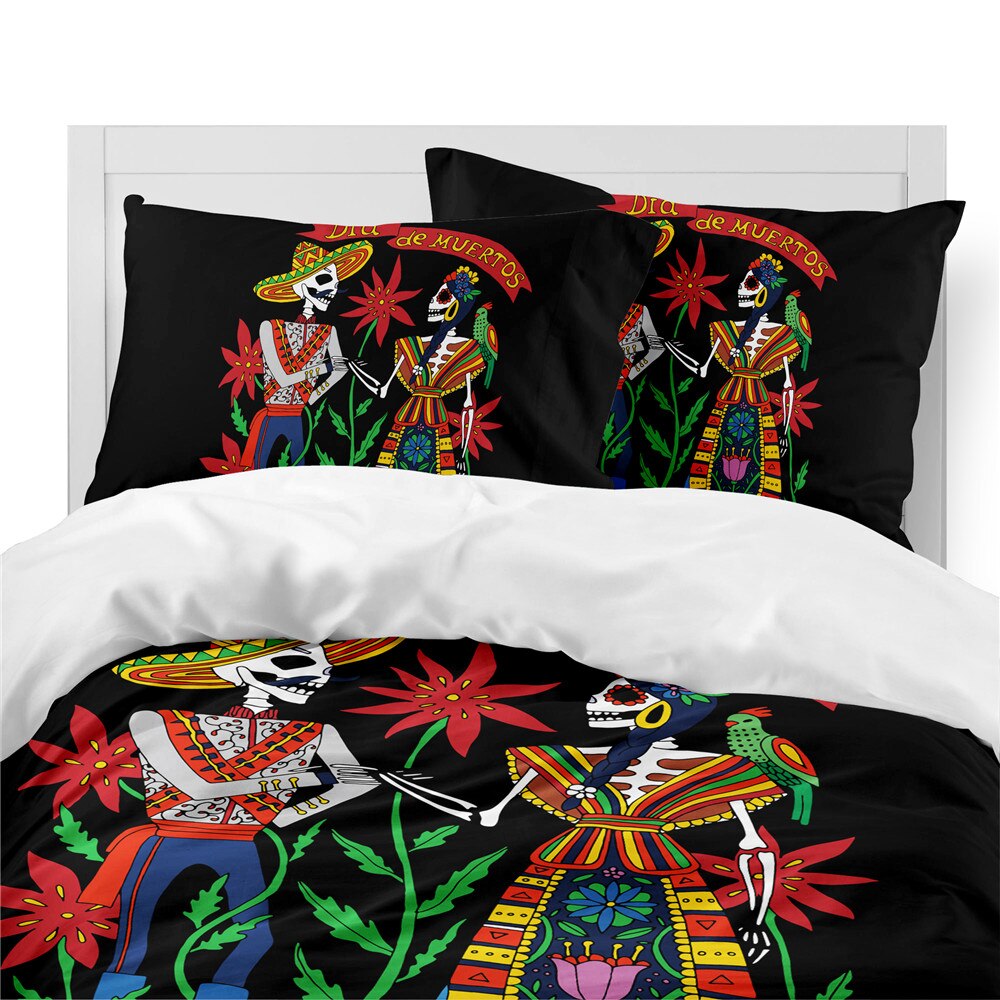 Exotic Couple Skeleton Bedding Set Colorful Floral Duvet Cover Sugar Skull