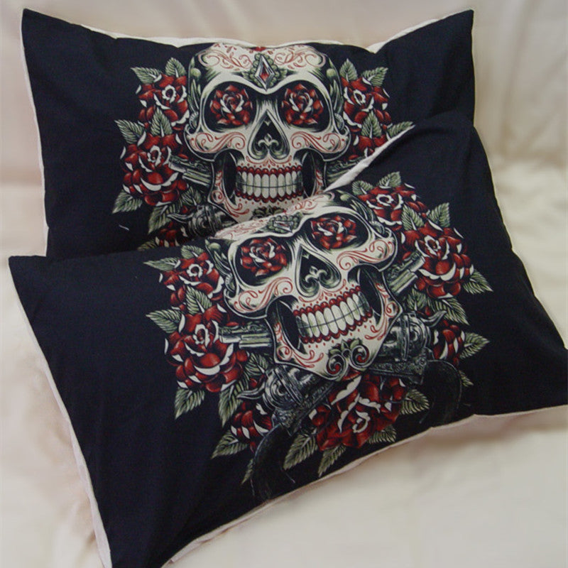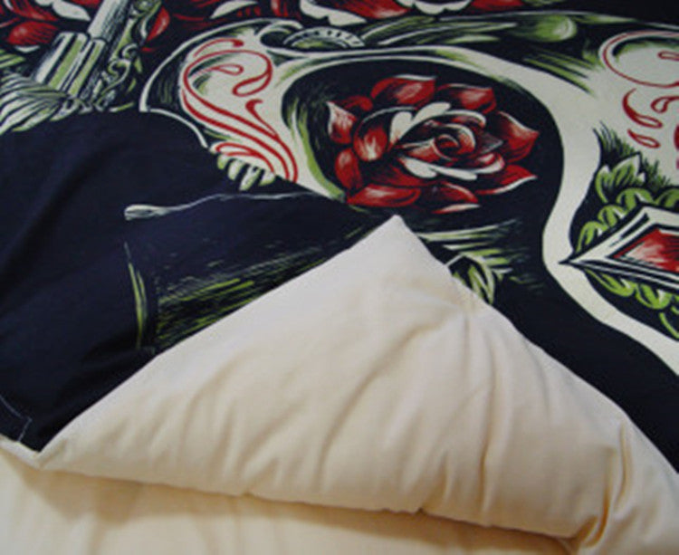 Fanaijia rose Skull Bedding Sets queen size Sugar pistol skull Duvet Cover Bed cool skull Print Black Bedclothes AU US bedline