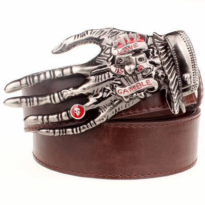 Fashion men belt skull buckle skull hand Heavy metal rock skull belt