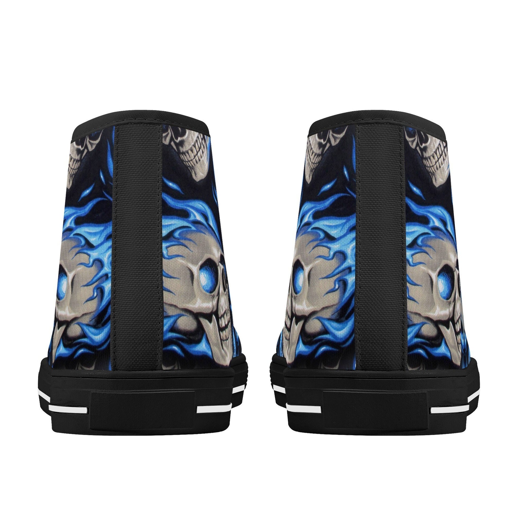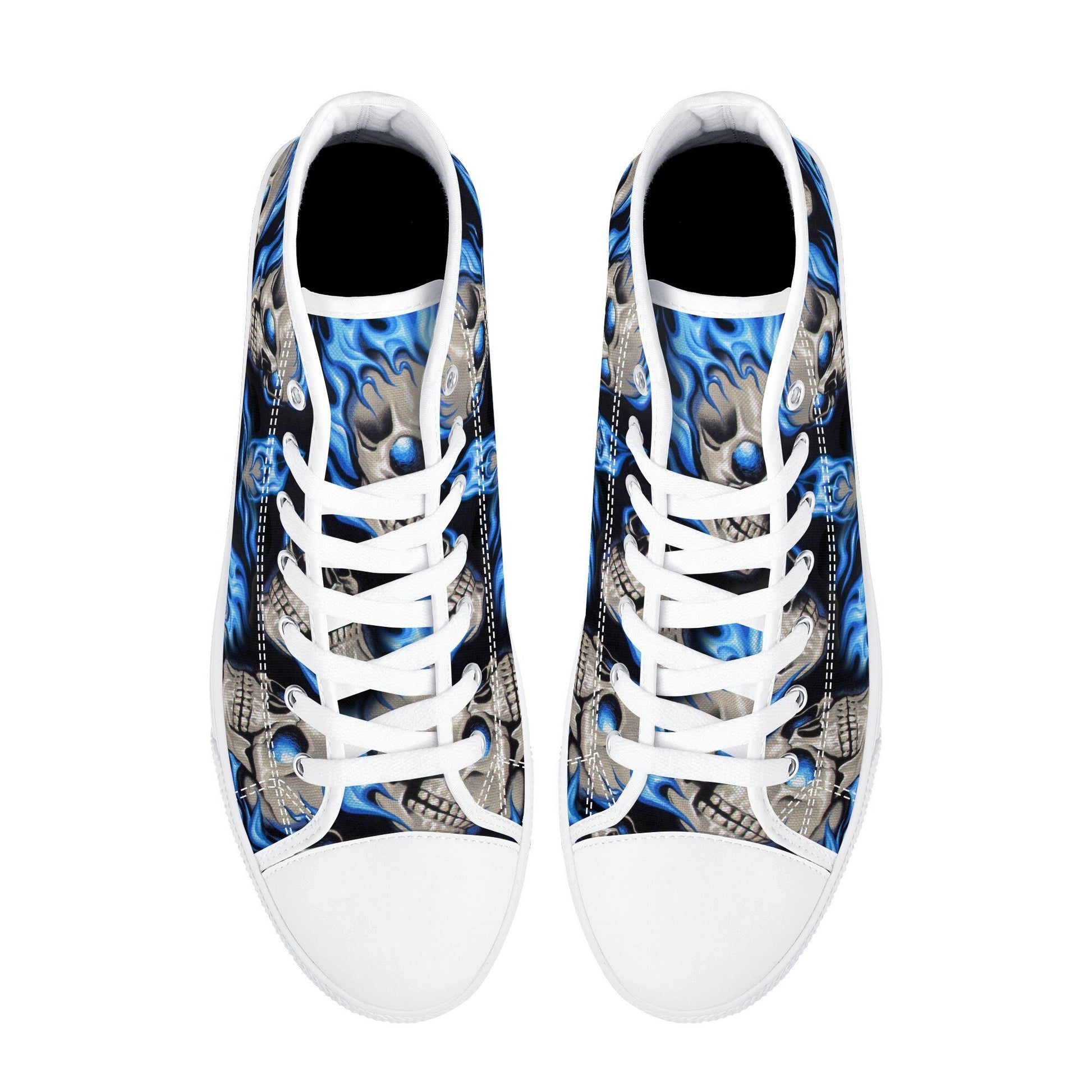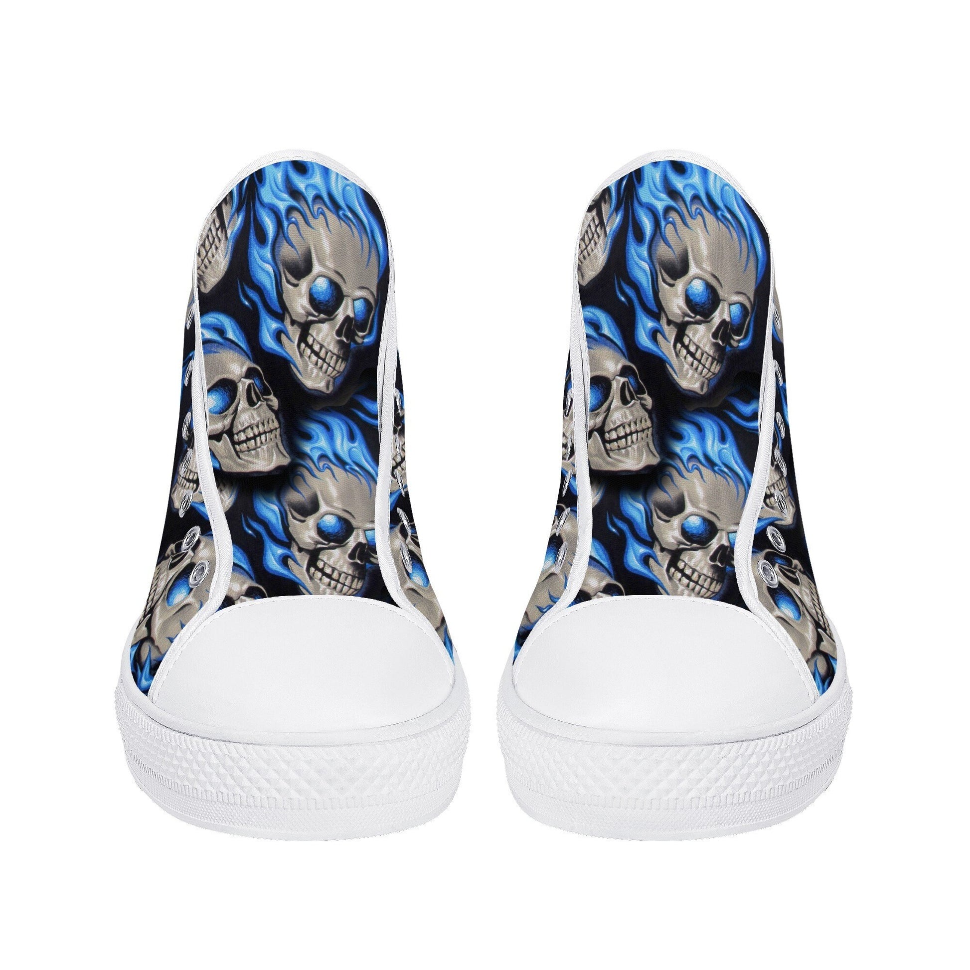 Flaming skull causual sneakers, biker skull women sneakers, skull women shoes, skeleton shoes, halloween women shoes, christmas skull shoes