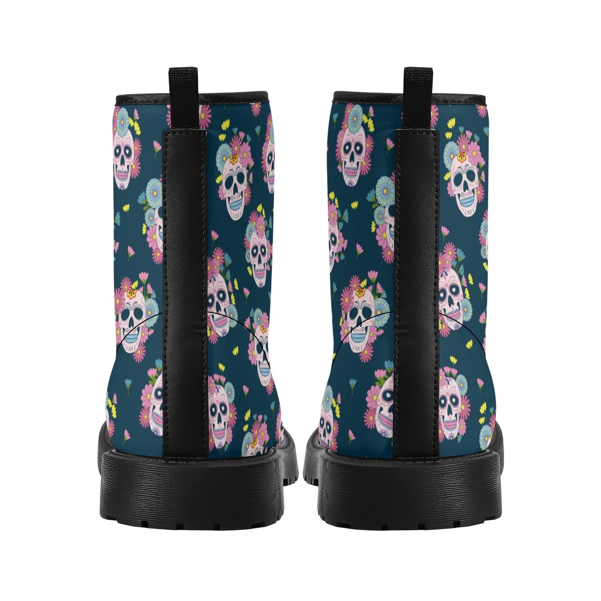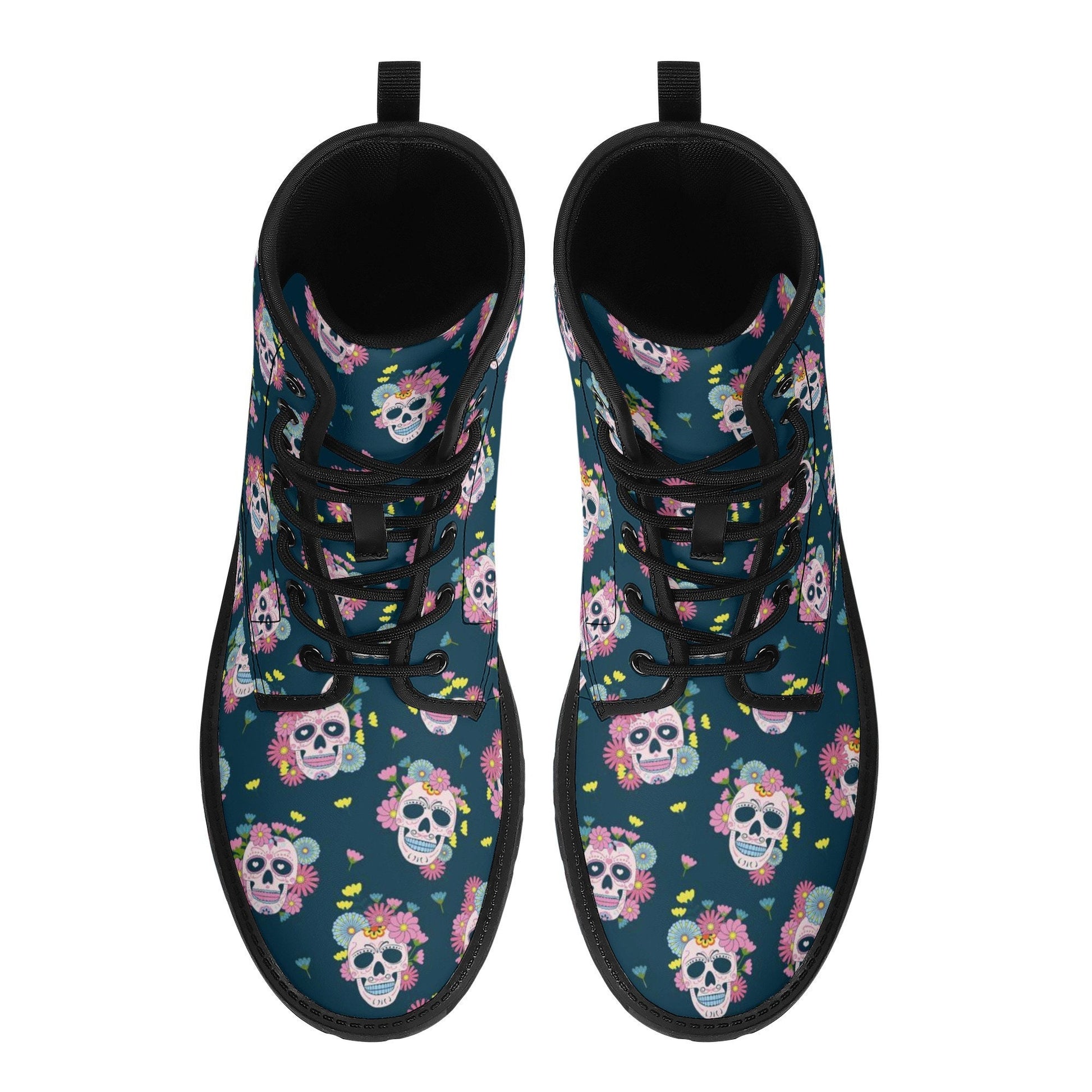 Cinco de mayo skull waterproof shoes, candy skull combat boots, day of the dead fashion leather boots, sugar skull girl men women boots, sugar skull girl waterproof Lace Up Anti-Slip platform nooties, floral skull waterproof boot, dia de los muertos shoes boots WOMEN SIZE Size______Foot Length (cm) US5_______23.1cm US5.5_____23.8cm US6_______24.4cm US7_______25.1cm US8_______25.7cm US9_______26.4cm US10______27.0cm US11______27.7cm US11.5____28.3cm US12______29.0cm MEN SIZE Size______Foot Length (cm) US5_______25.1cm US6_______25.7cm US7_______26.2cm US7.5_____27.1cm US8.5_____27.7cm US9.5_____28.3cm US10_______29.0cm US11______29.6cm US12_____30.3cm US13______30.9cm US14______31.6cm High quality eco-friendly synthtic leather material on waterproof boots New style for black gum rubber outsole and black rear pull-loop Breathable EVA foamed insole anti-heat, anti-moisture, anti-corrosion Mesh fabric and foamed lining with lace-up closure for a snug fit Platform measures approx 0.75”for traction and durability A groovy colour explosion for your feet in our signature unisex combat boots Designed for fashion people, stylish and personalized The Upper Made of PU,the sole made of rubber. Soft PU make it comfortable and soft. Two different colors of sole. Rear pull-loop make the boots easy to put on. Season: Autumn, Spring, Winter Occasion: Outdoor, Daily Gender:Women Care Instruction: Spot clean only ======== All products in our store are only manufactured upon receiving an order from the customer. Please carefully review the product description and dimensions in the illustrative images before placing an order. The following cases are not eligible for return/exchange: 1. The product you receive matches the description. 2. The product dimensions (with illustrative images describing the dimensions) you receive match the description. 3. The product has been customized as per your request (e.g., printed with your name/image).