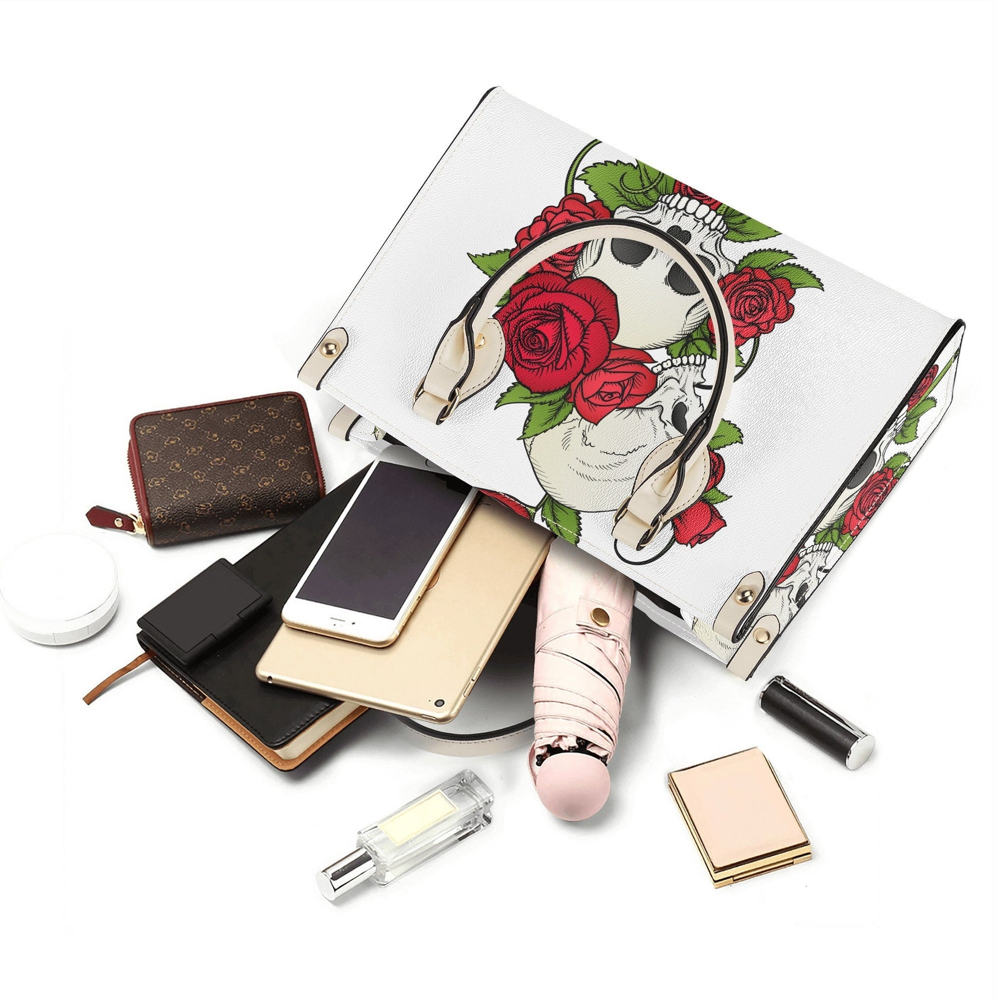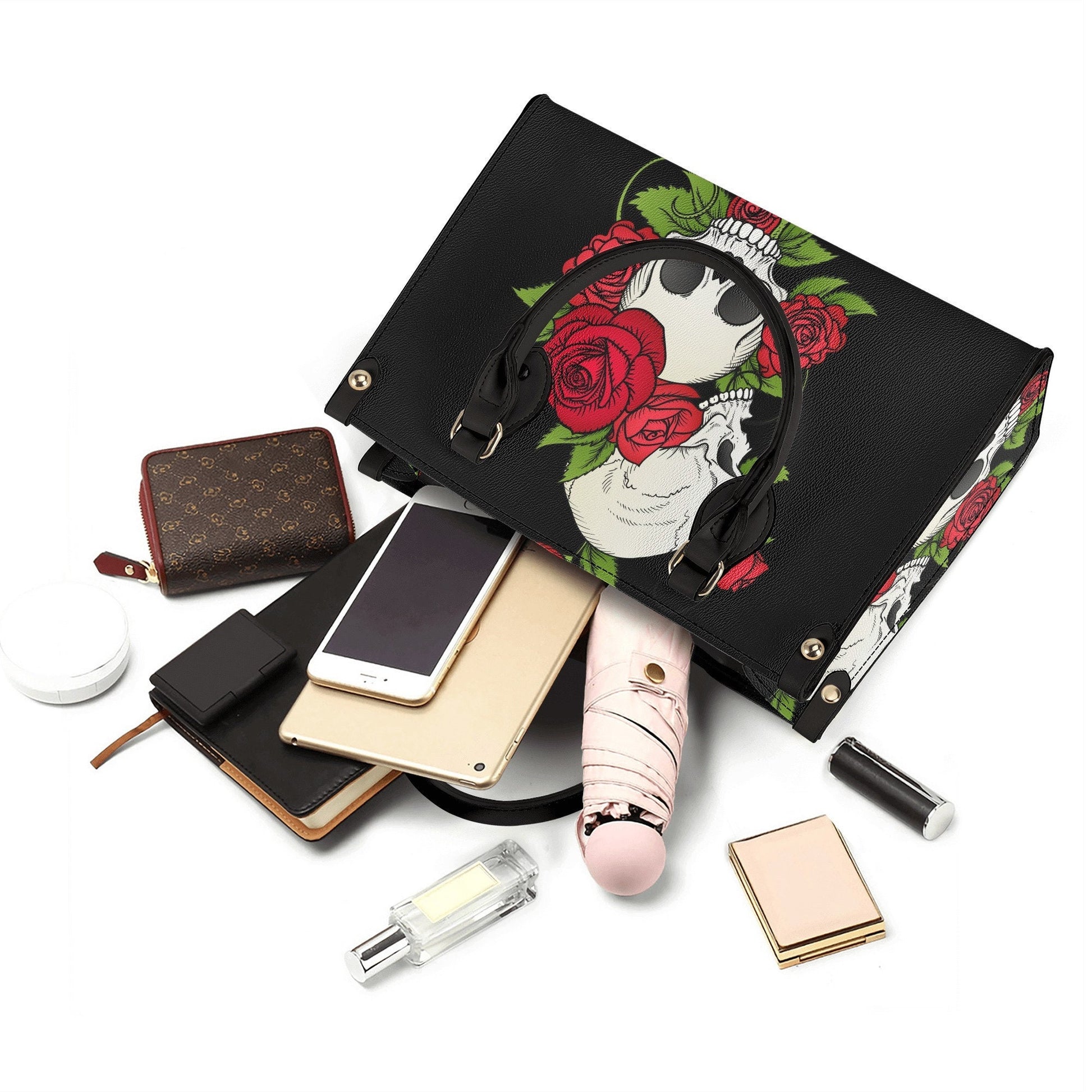 Floral skull women's purse, skeleton handbag with strap, floral skull travel bag, hooded skull women's purse, gothic skull travel bag, hoode
