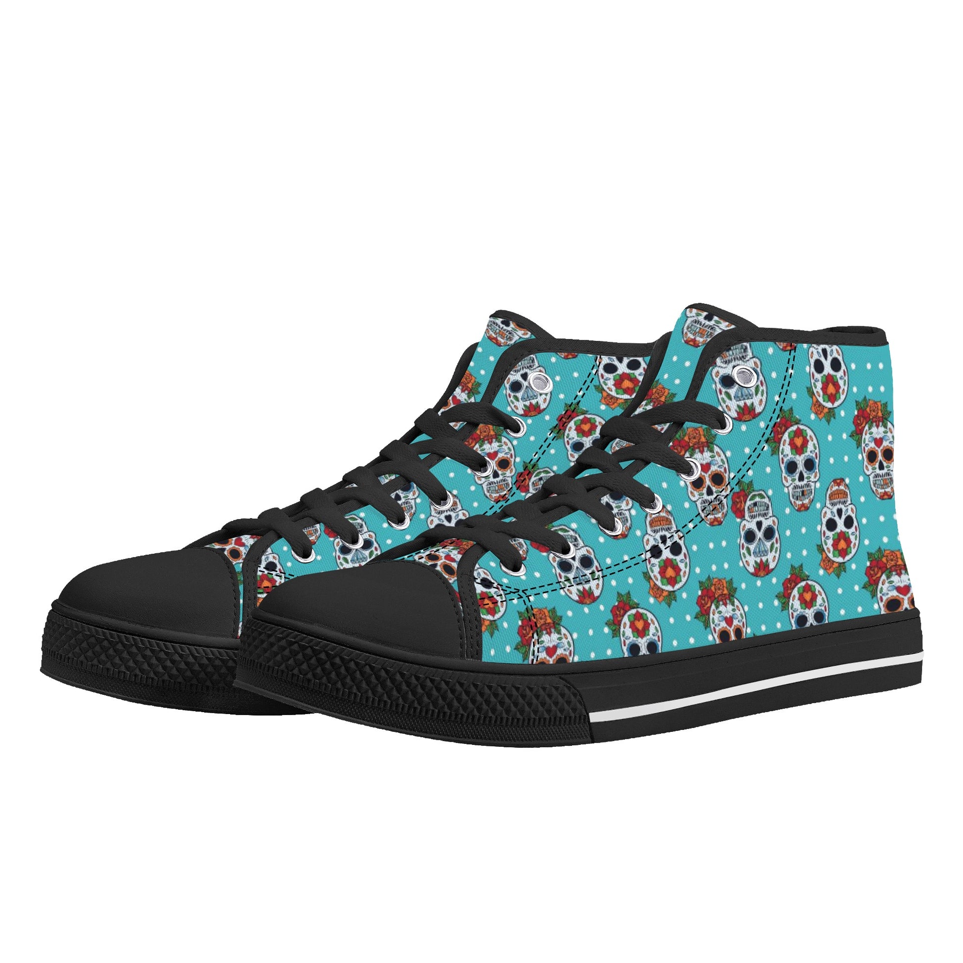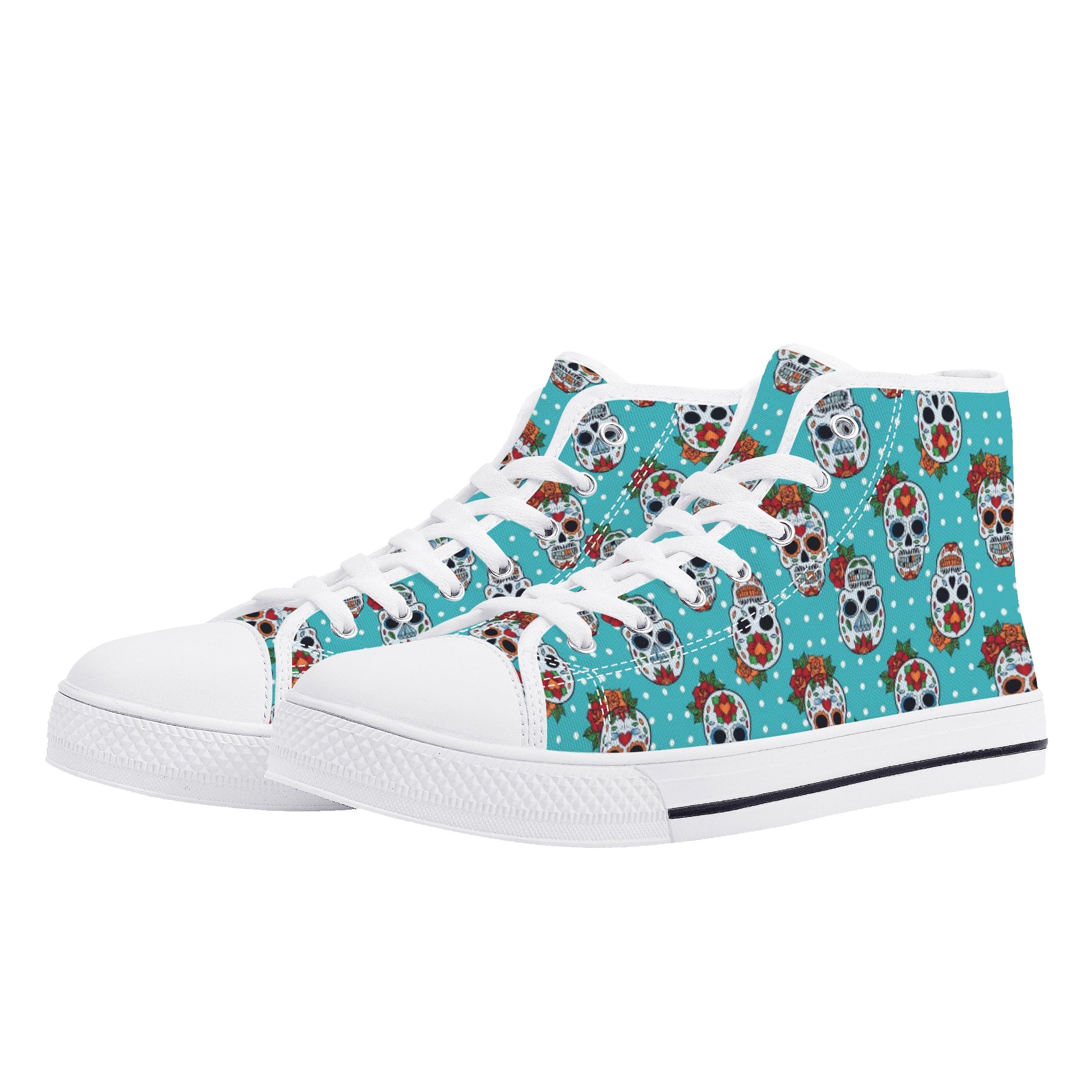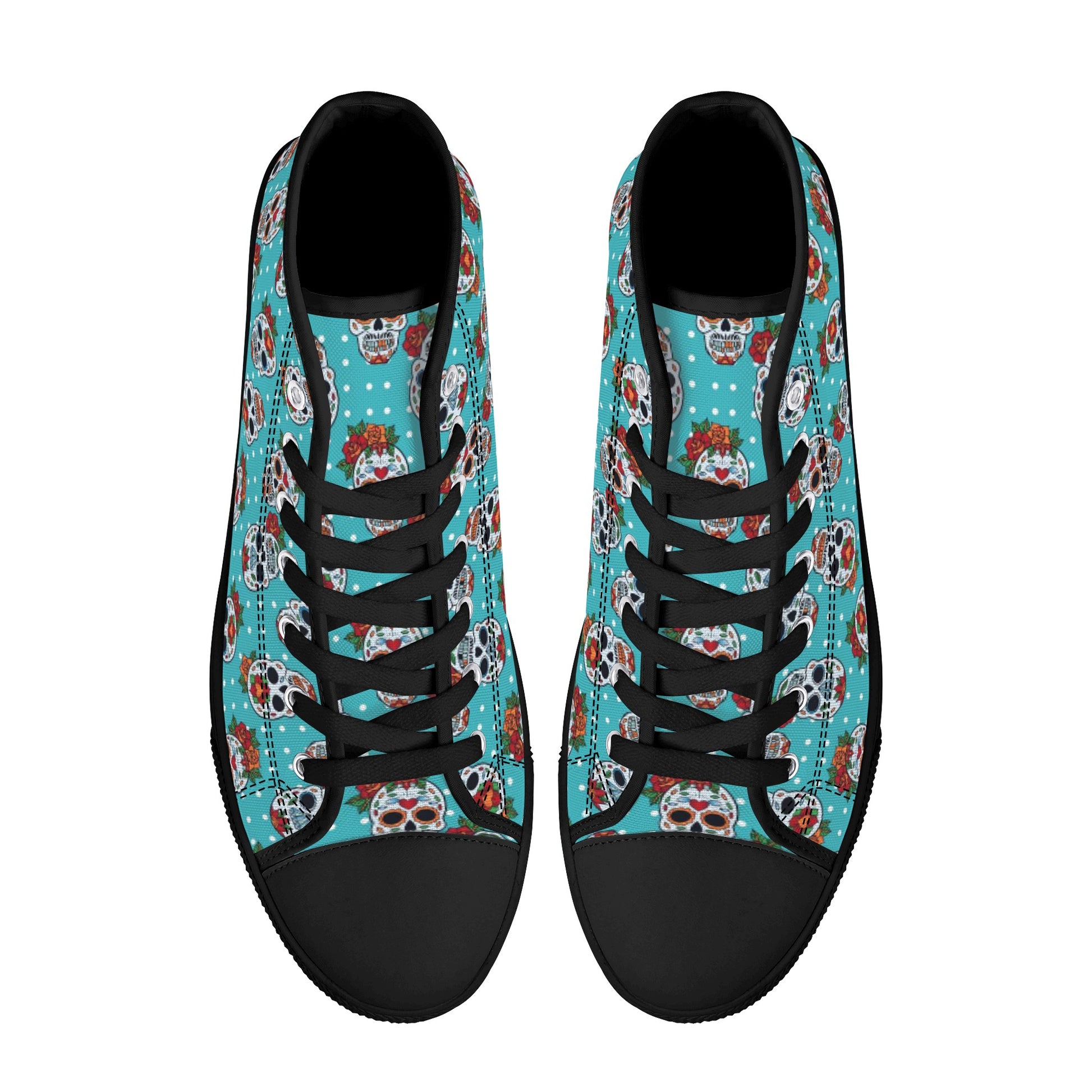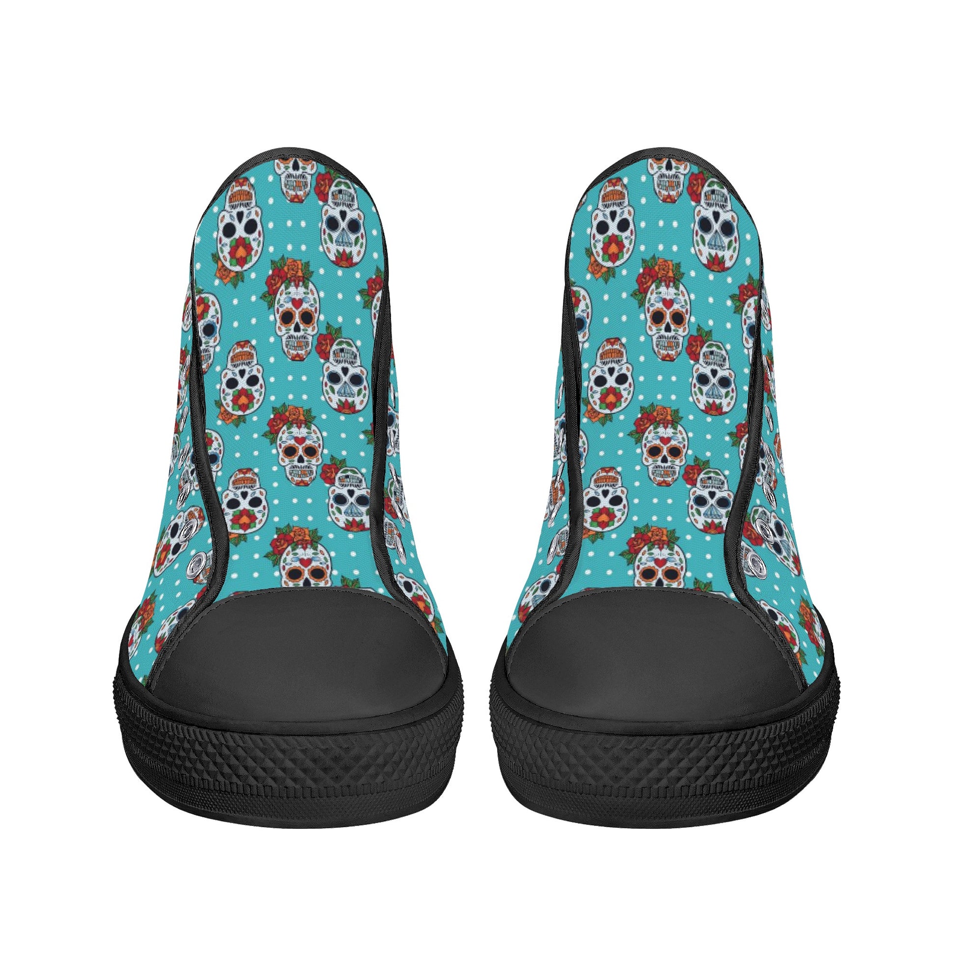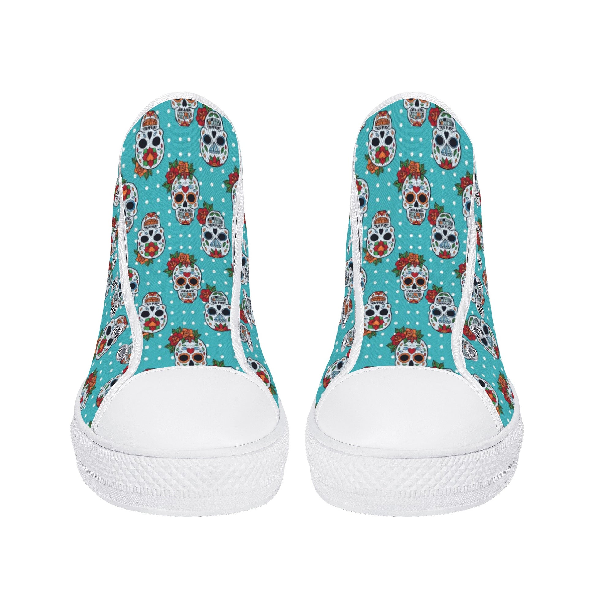 Floral sugar skull Day of the dead Women's High Top Canvas Shoes With Customized Tongue