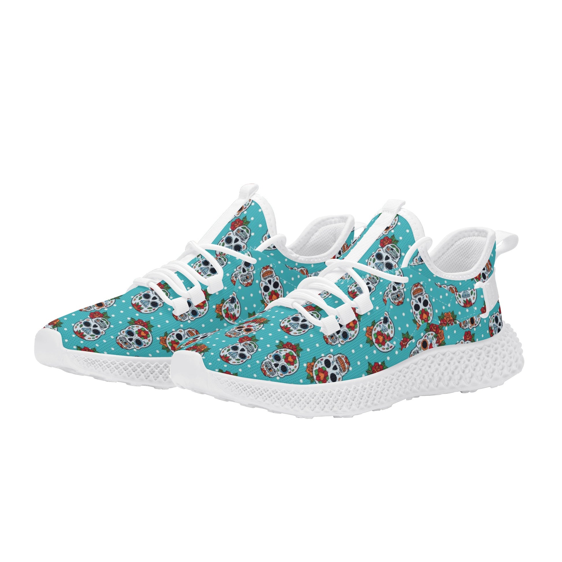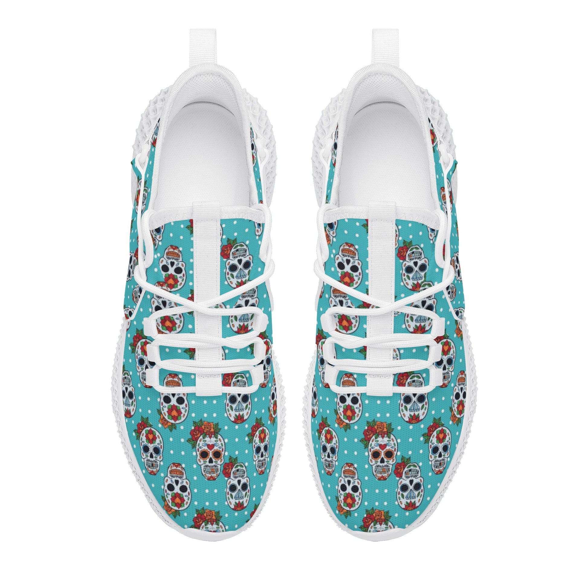 Floral sugar skull Day of the dead Women's New Arrival Mesh Knit Shoes