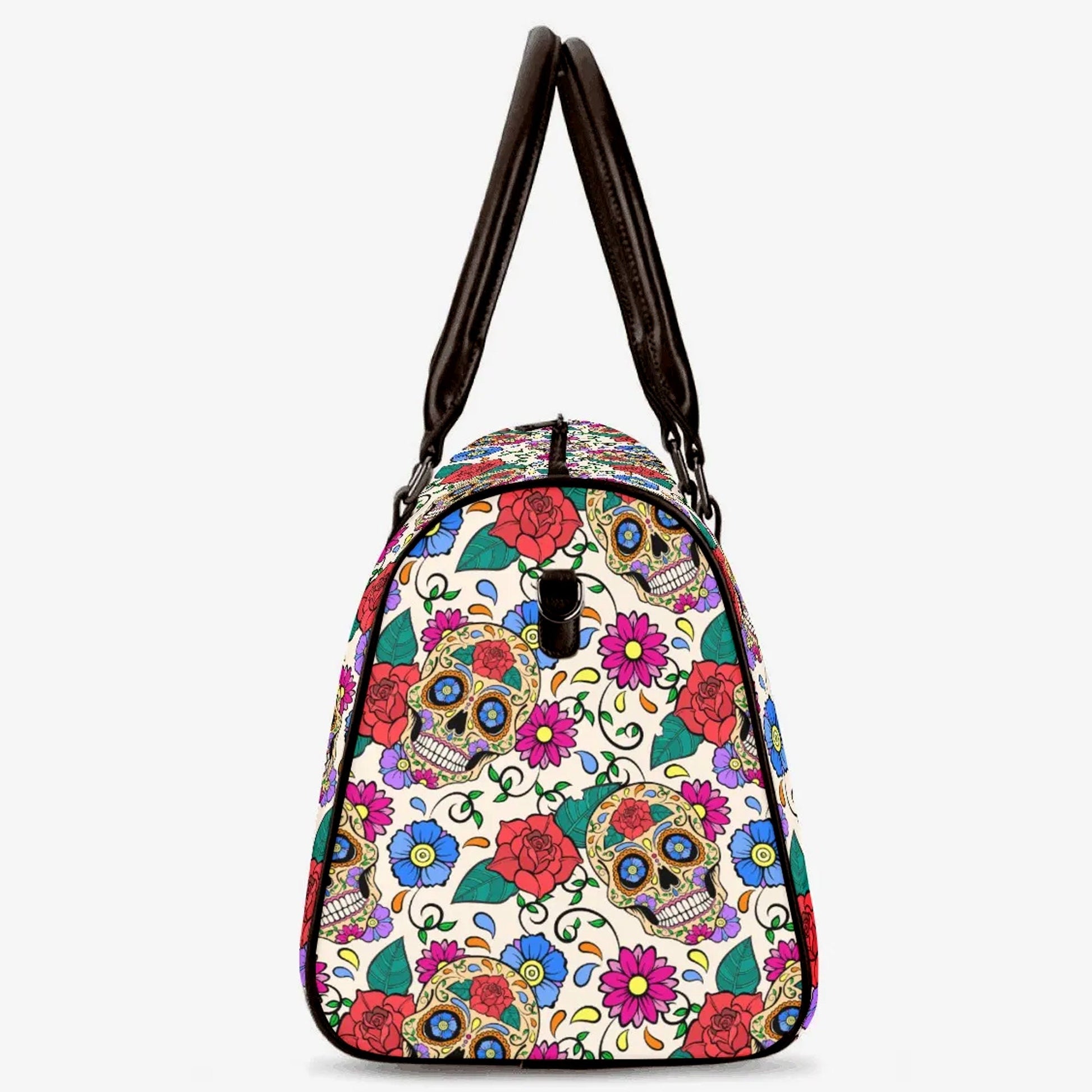 Floral sugar skull Vacation Holidays Travel Bag, candy skull handbag, floral skull Overnight Bag floral sugar skull large travel bag handbag