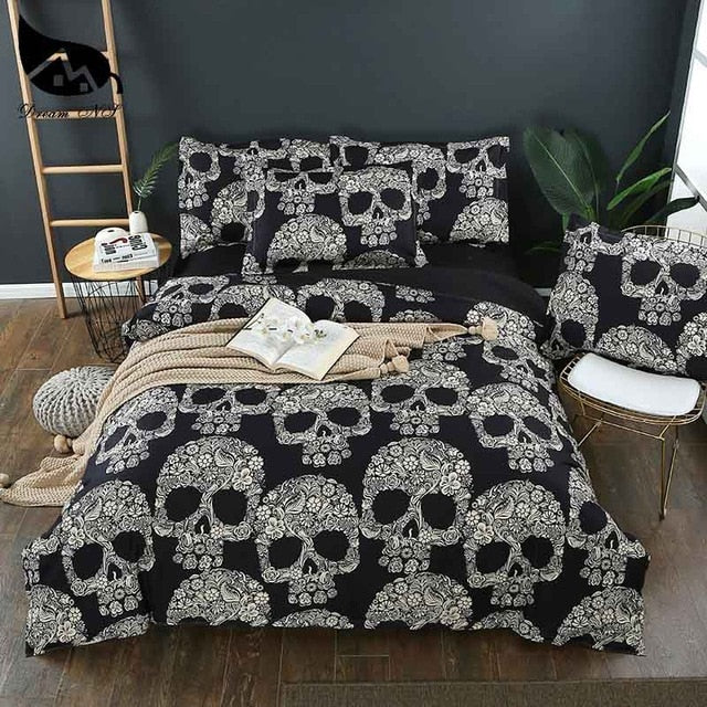 Flower Skull Beddings and Bed Sets Black Color Duvet Cover