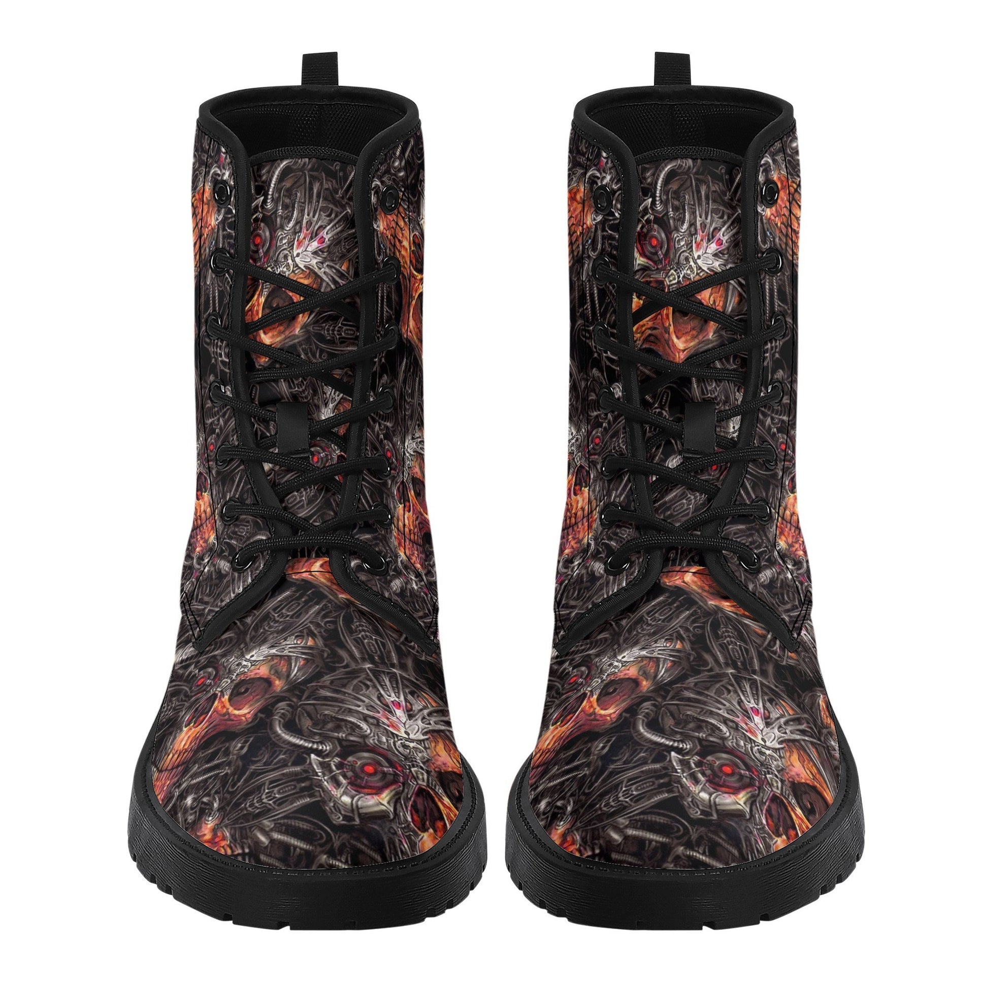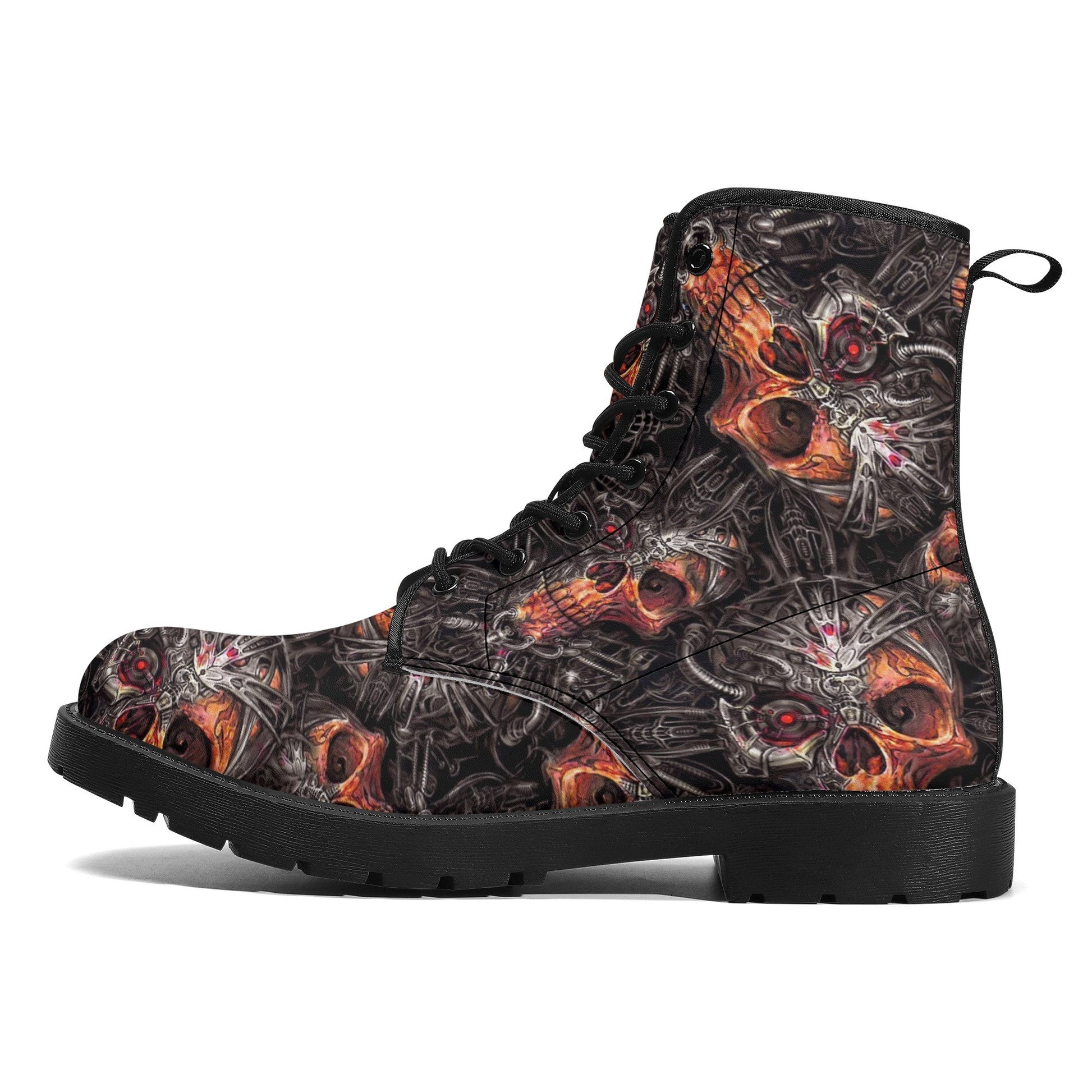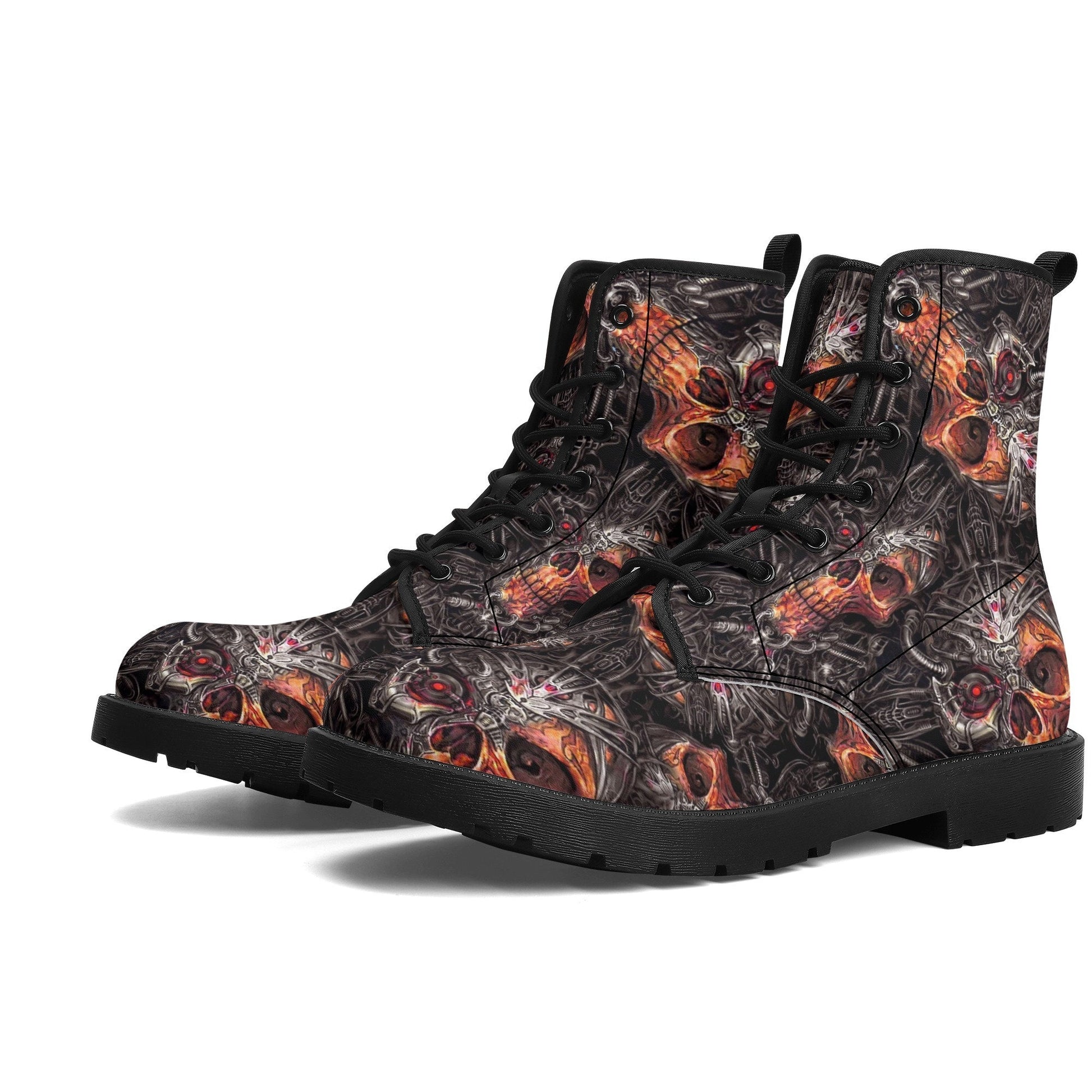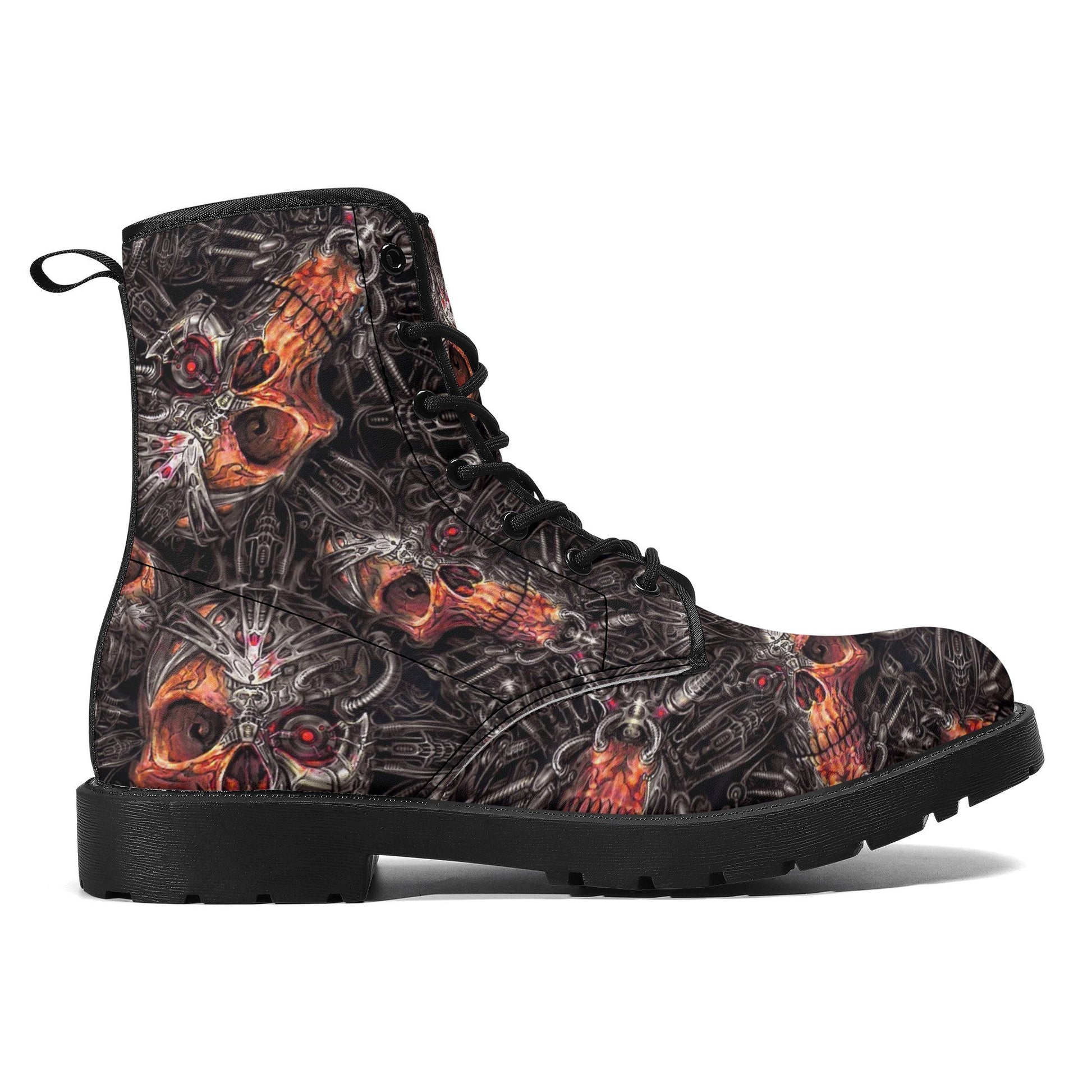 Gothic grim reaper leather boots, Halloween Skeleton skull boots, Gothic pattern boots, Horror skull punisher leather skull in fire boots